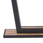 Natural wood grain and black metal detailing bring warmth to this geometric design table. Pair with a variety of décor pieces to create your perfect design space. Pedestal base with geometric detail is visually appealing and will work well in many spaces – hallway, living room, entryway, or even a powder room.