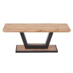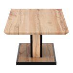 Natural wood grain and black metal detailing bring warmth to this geometric design table. Pair with a variety of décor pieces to create your perfect design space. Pedestal base with geometric detail is visually appealing and will work in formal or casual modern living rooms.