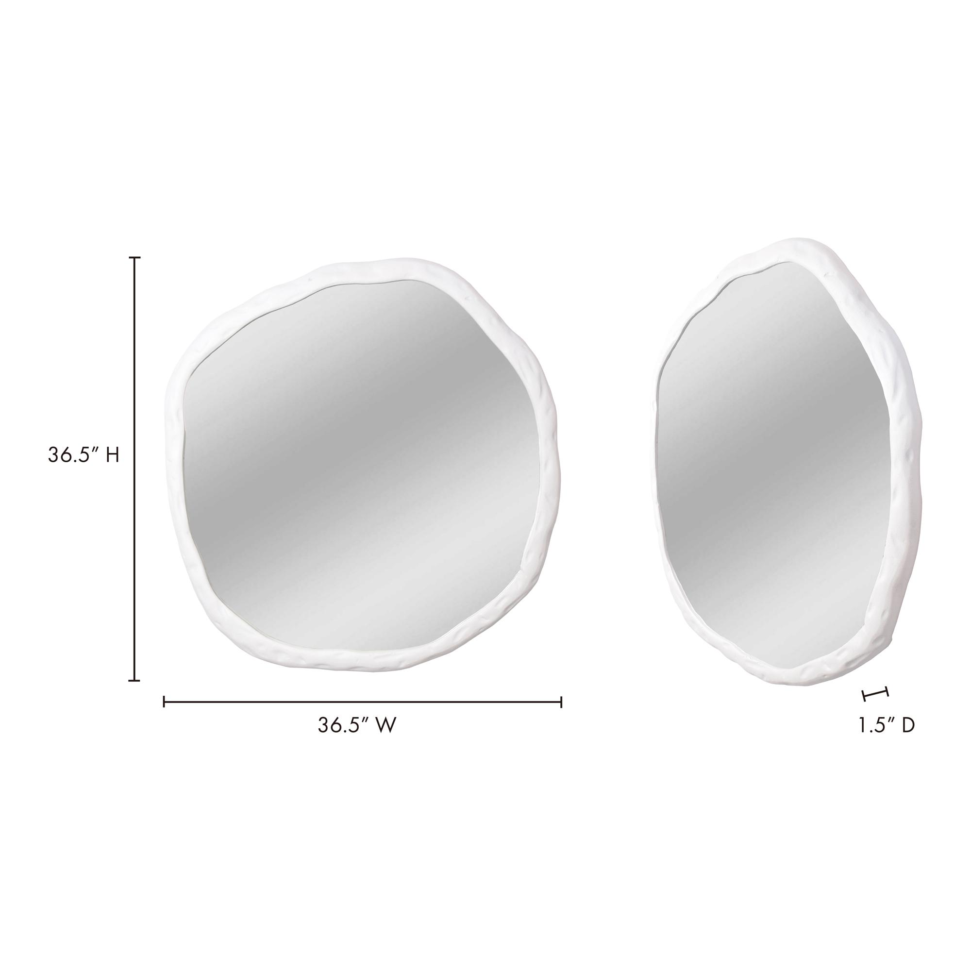 Amp up those positive reflections with this white beauty. The large Foundry wall mirror will hang centerfold wherever you’ve been looking the most. Mirrors brighten up your space in an instant, and this one hangs easily in a lighter-weight aluminum frame. Artfully rustic with an organic touch to its wood-like design.