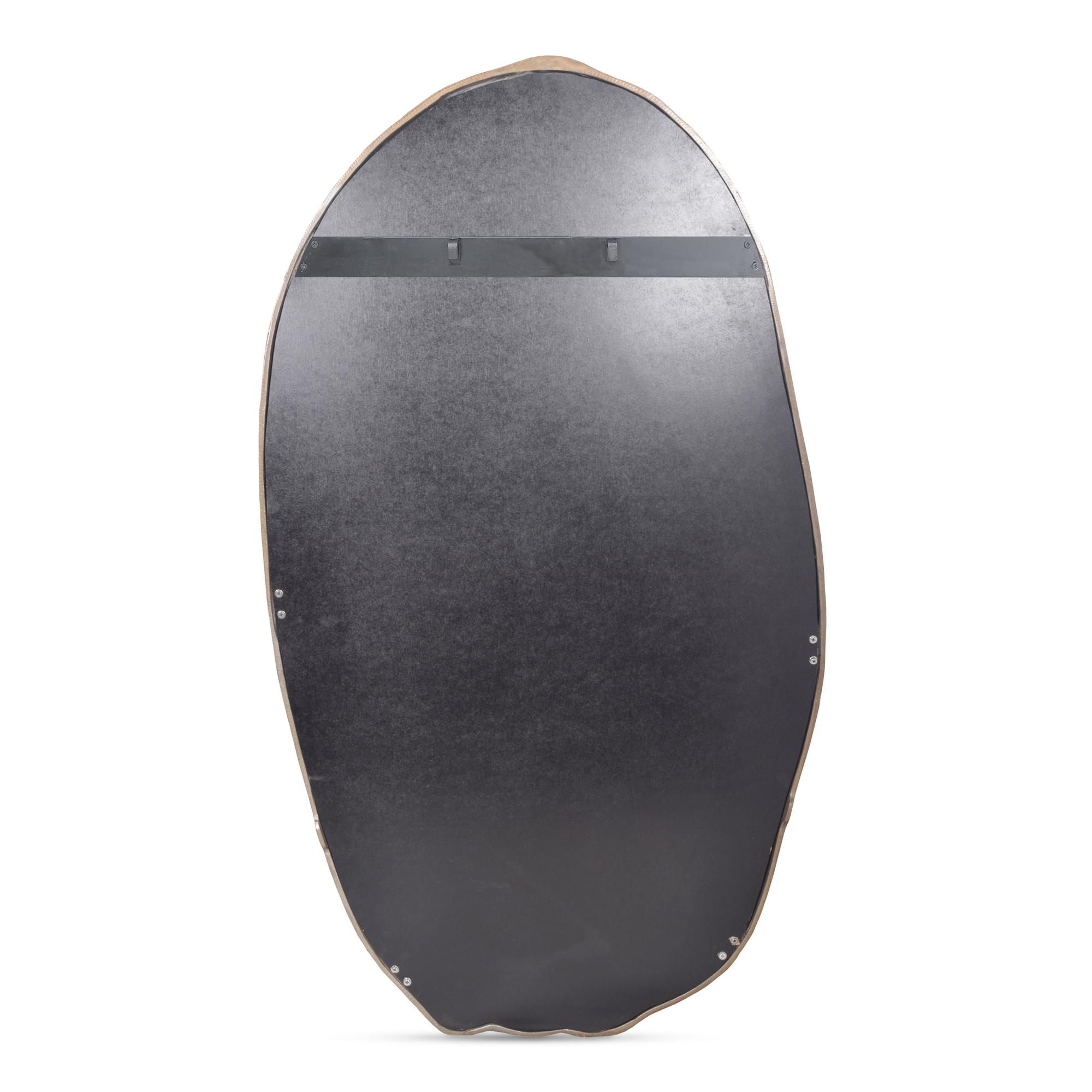 Amp up those positive reflections with this gold beauty. The Foundry oval wall mirror will hang centerfold wherever you’ve been looking the most. Mirrors brighten up your space in an instant, and this one hangs easily in a lighter-weight aluminum frame. Artfully rustic with an organic touch to its wood-like design.