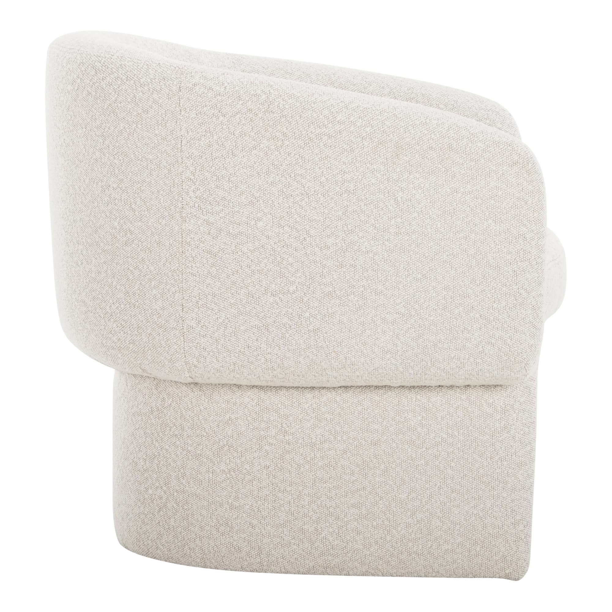 The Franco occasional chair features a uniquely curved design to tuck into. An idyllic nostalgic accent that also rests easier on the environment with an FSC-certified pine and plywood frame and recycled polyester upholstery.