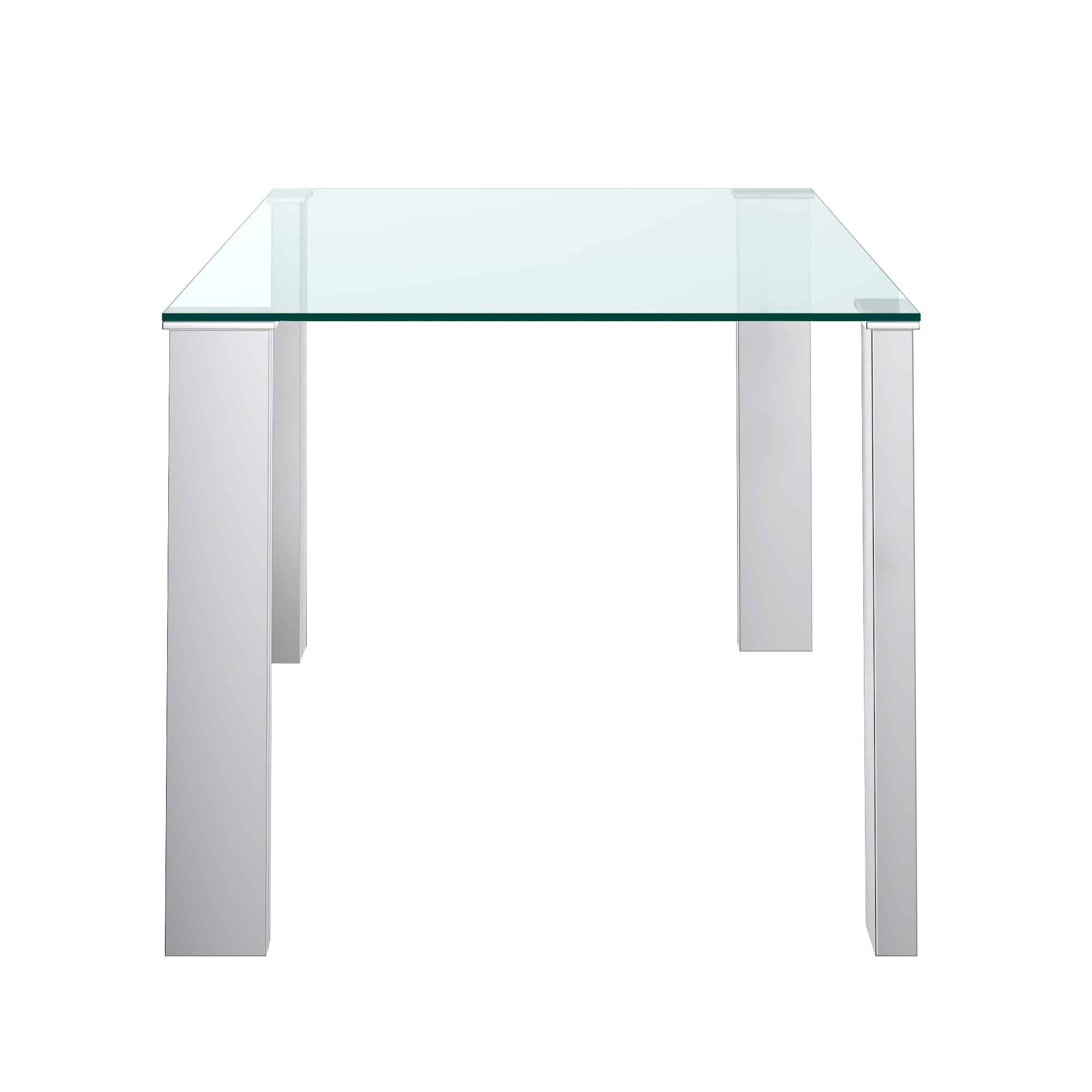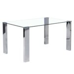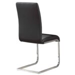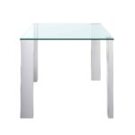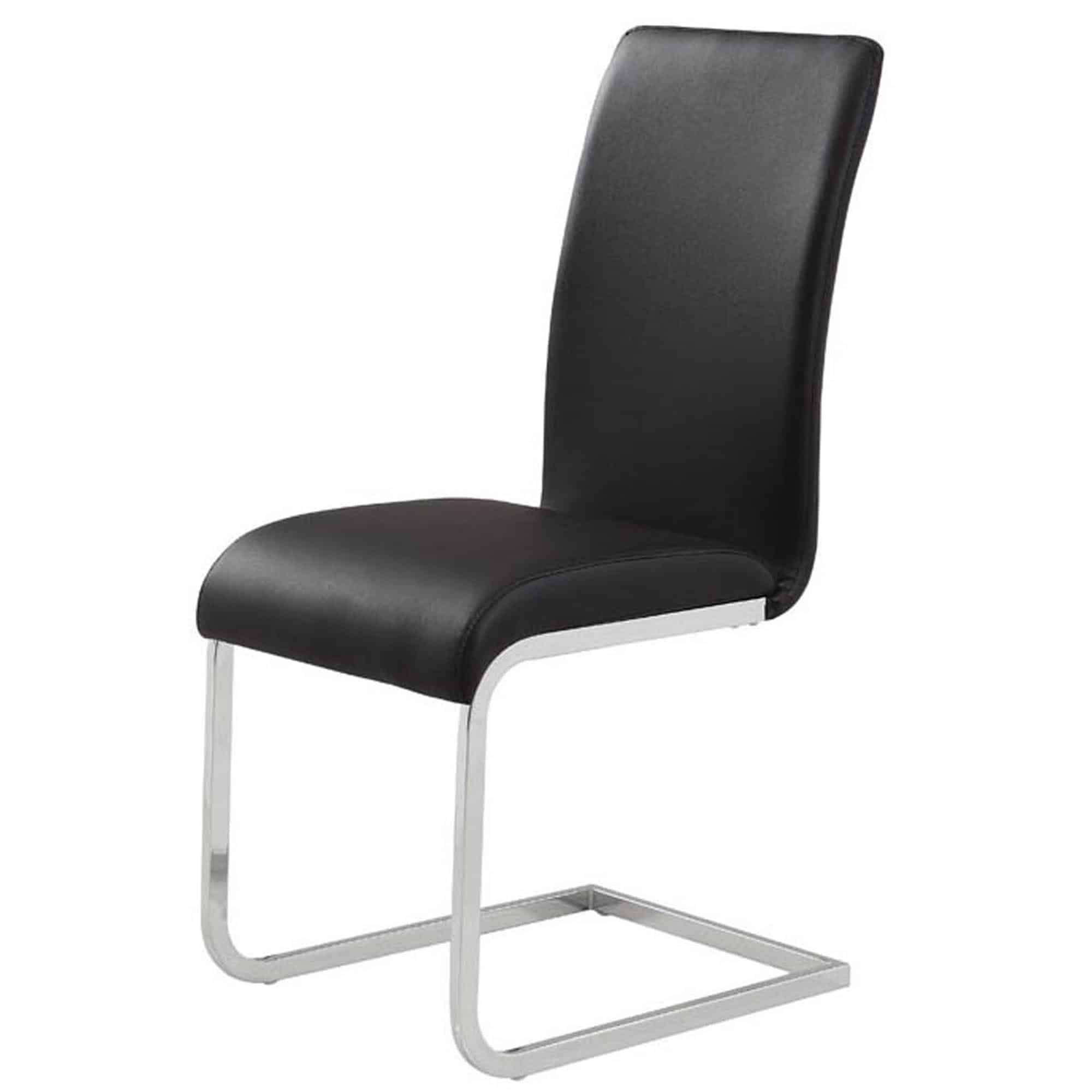 The clean lines of contemporary design are perfectly defined with this dining table. The rectangular posts with their chrome finish and the clear glass table top come together seamlessly to create a beautiful table with a light airy feel. Great for open concept areas where you don’t want to close off the space, or even for tighter spaces where you want to create a more open feel. Contemporary style chair with chromed metal frame and faux leather seat. The subtle curves on the chair back and seat provide plenty of comfort.