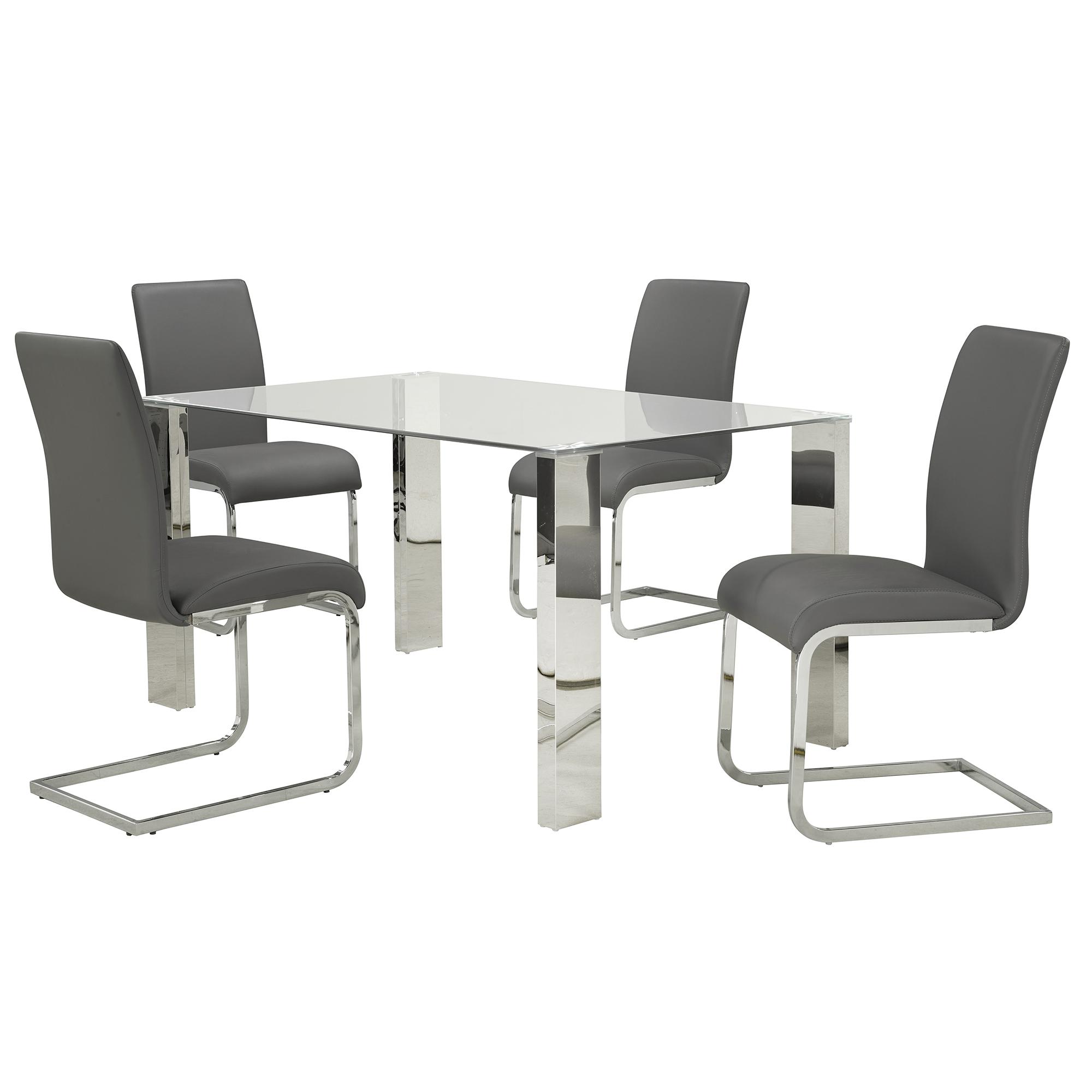 Frankfurt/Maxim 5pc Dining Set in Chrome with Grey Chair