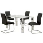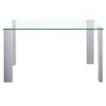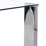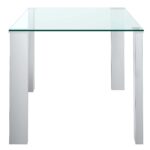 The clean lines of contemporary design are perfectly defined with this dining table. The rectangular posts with their chrome finish and the clear glass table top come together seamlessly to create a beautiful table with a light airy feel. Great for open concept areas where you don’t want to close off the space, or even for tighter spaces where you want to create a more open feel. Mix and match with a variety of chairs styles and colours to create the look that brings your home to life.