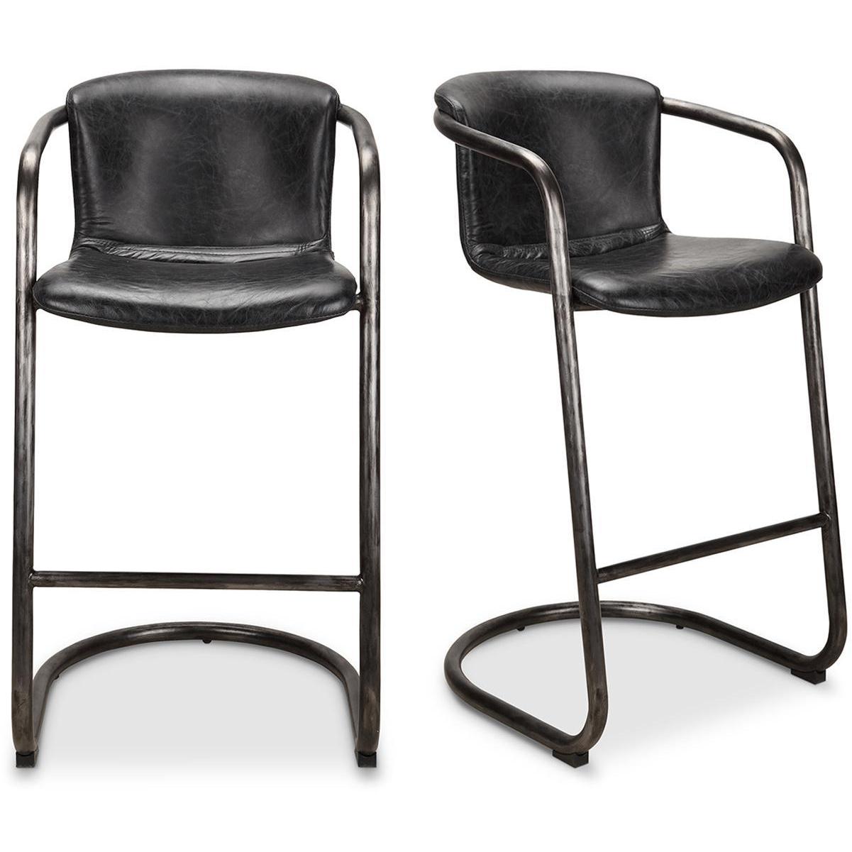 Freeman Barstool Onyx Black Leather (Set of 2)