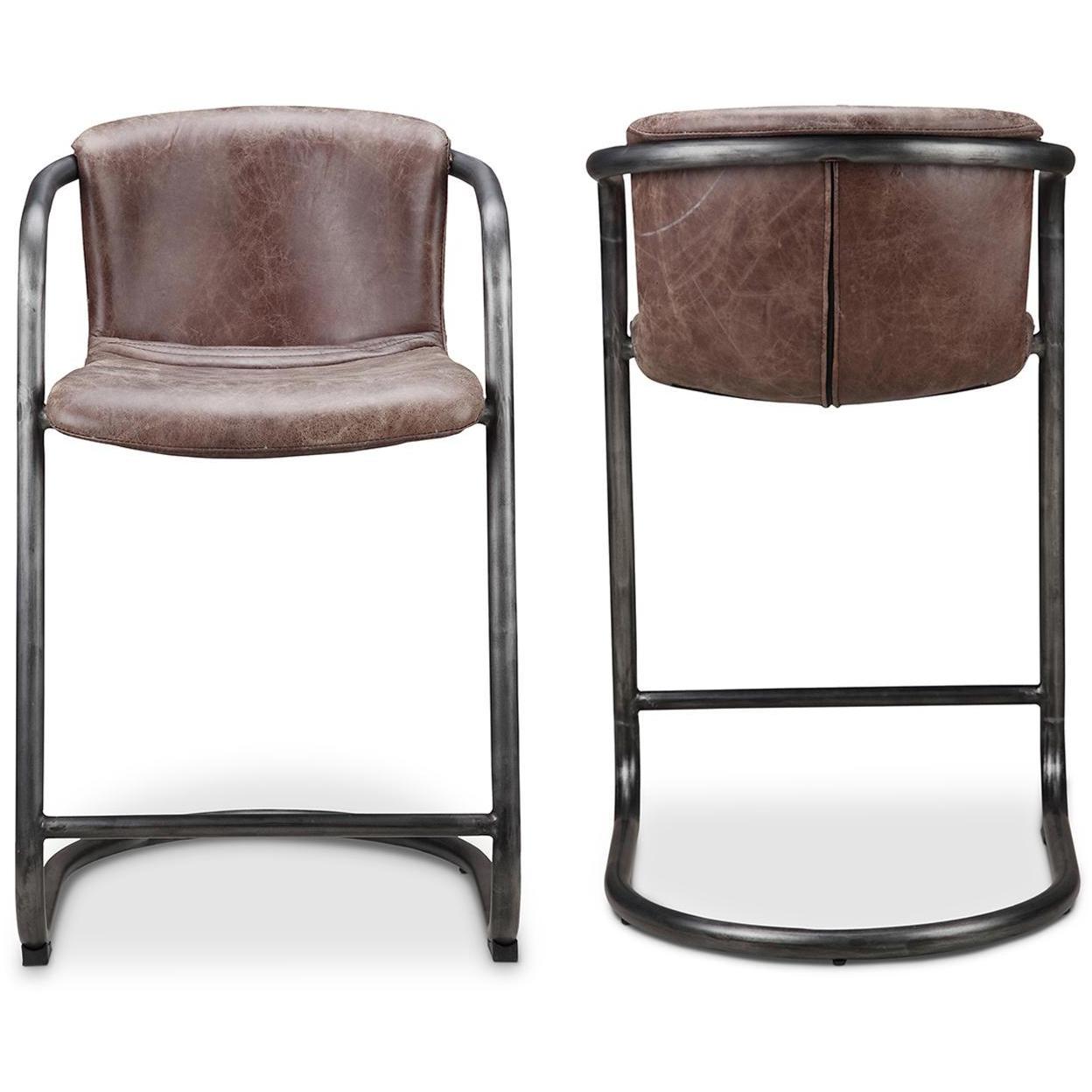 Freeman Counter Stool Grazed Brown Leather (Set of 2)