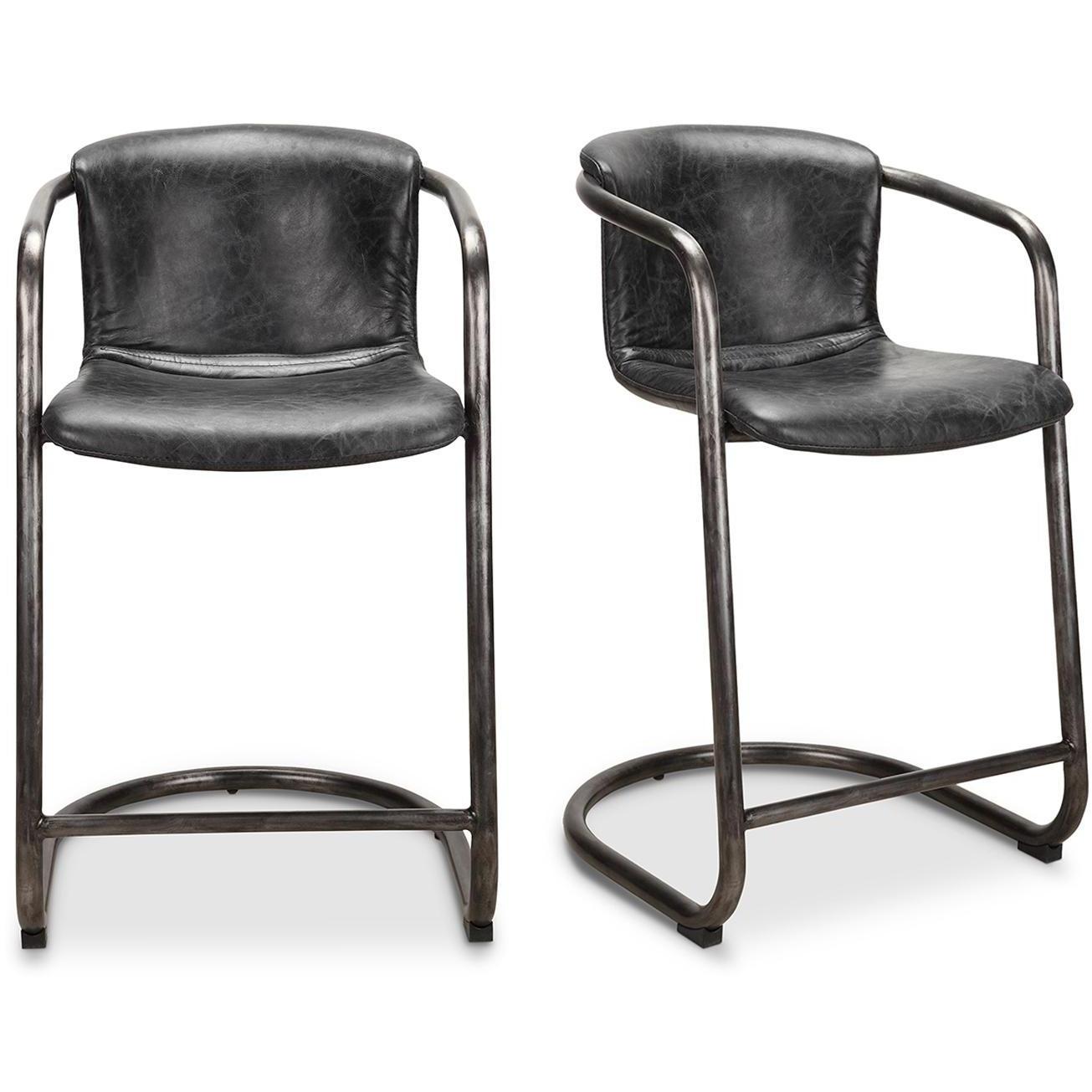 Freeman Counter Stool Onyx Black Leather (Set of 2)