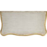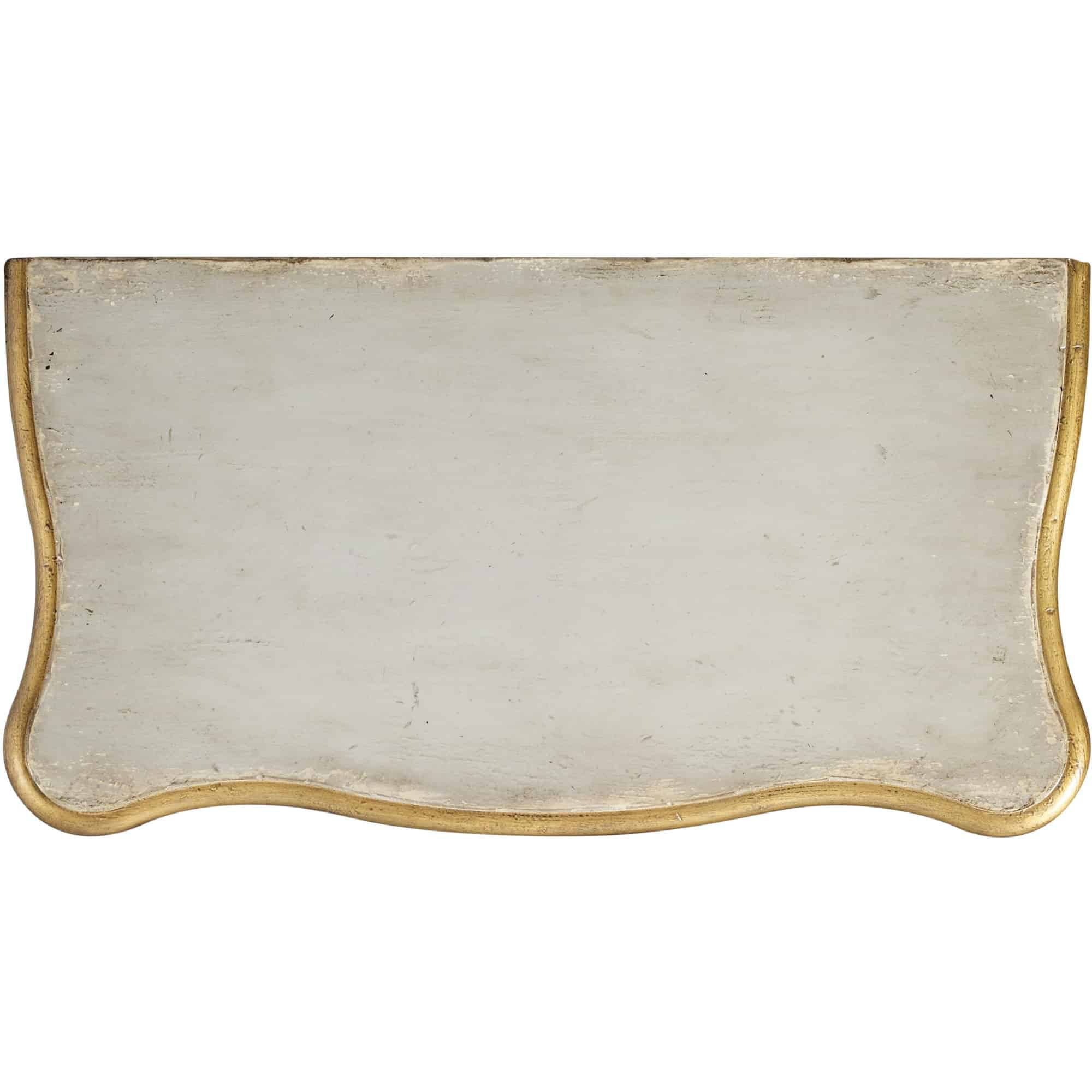 - Finish: Light gray finish with gold accents. Distressing includes rub-through.