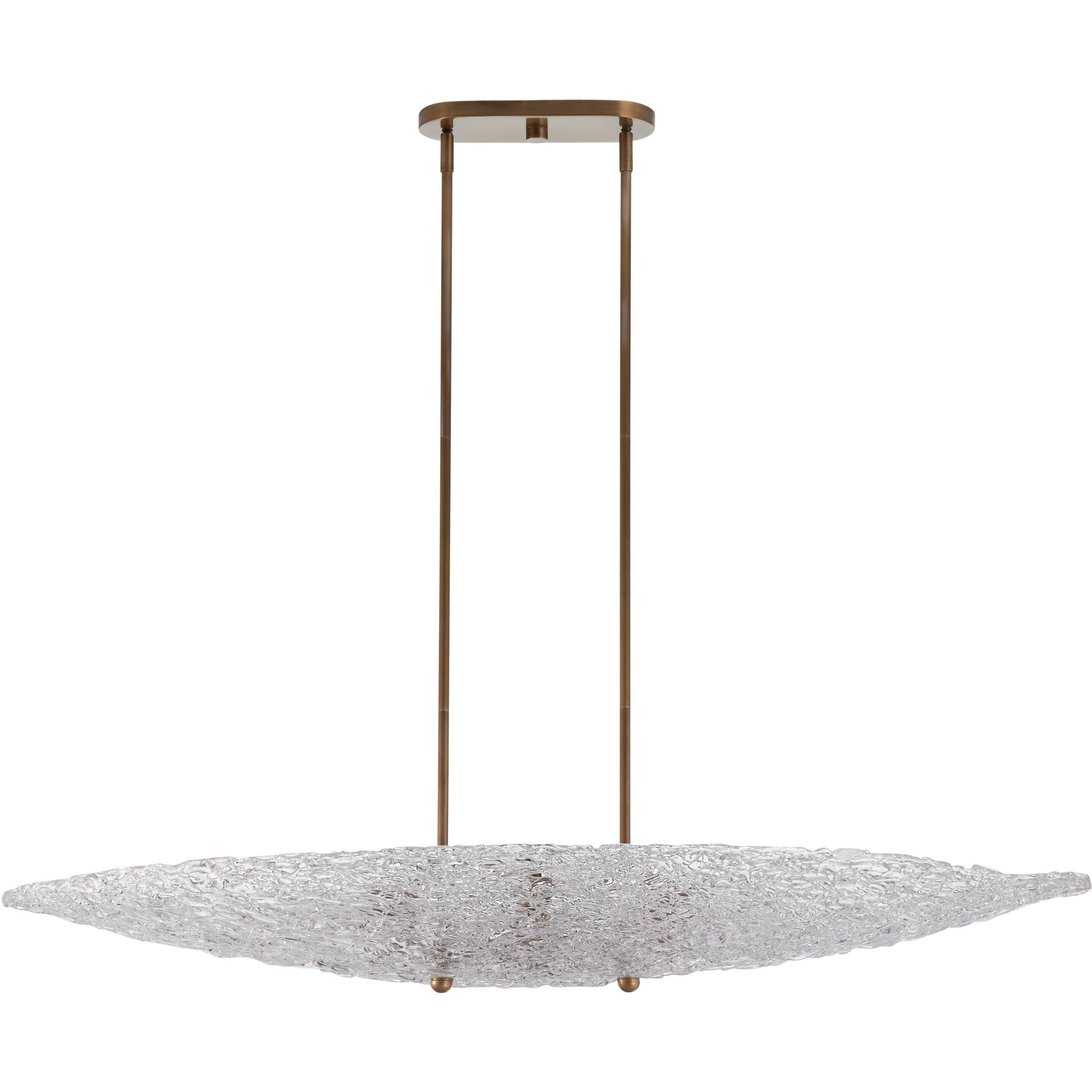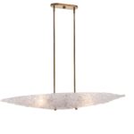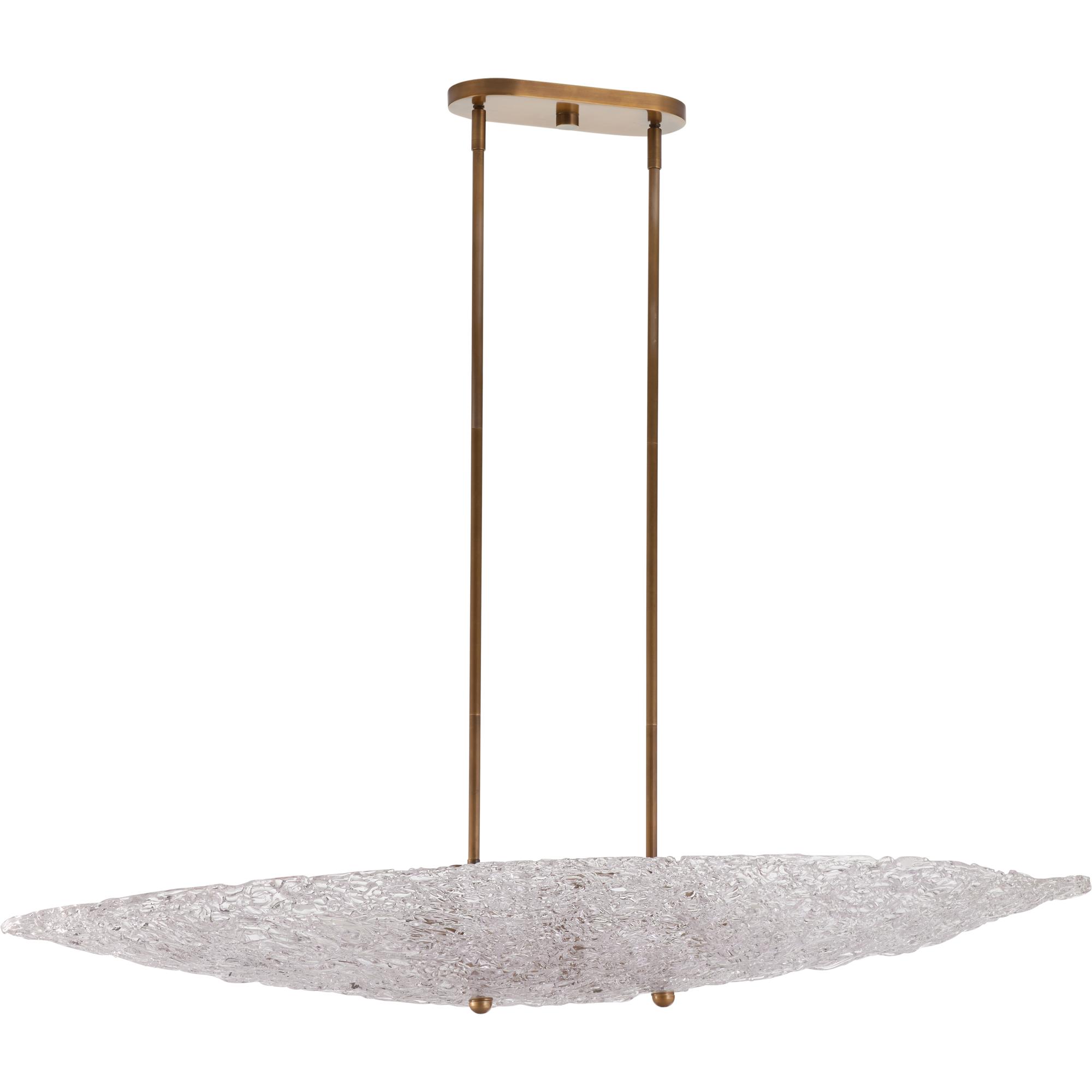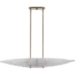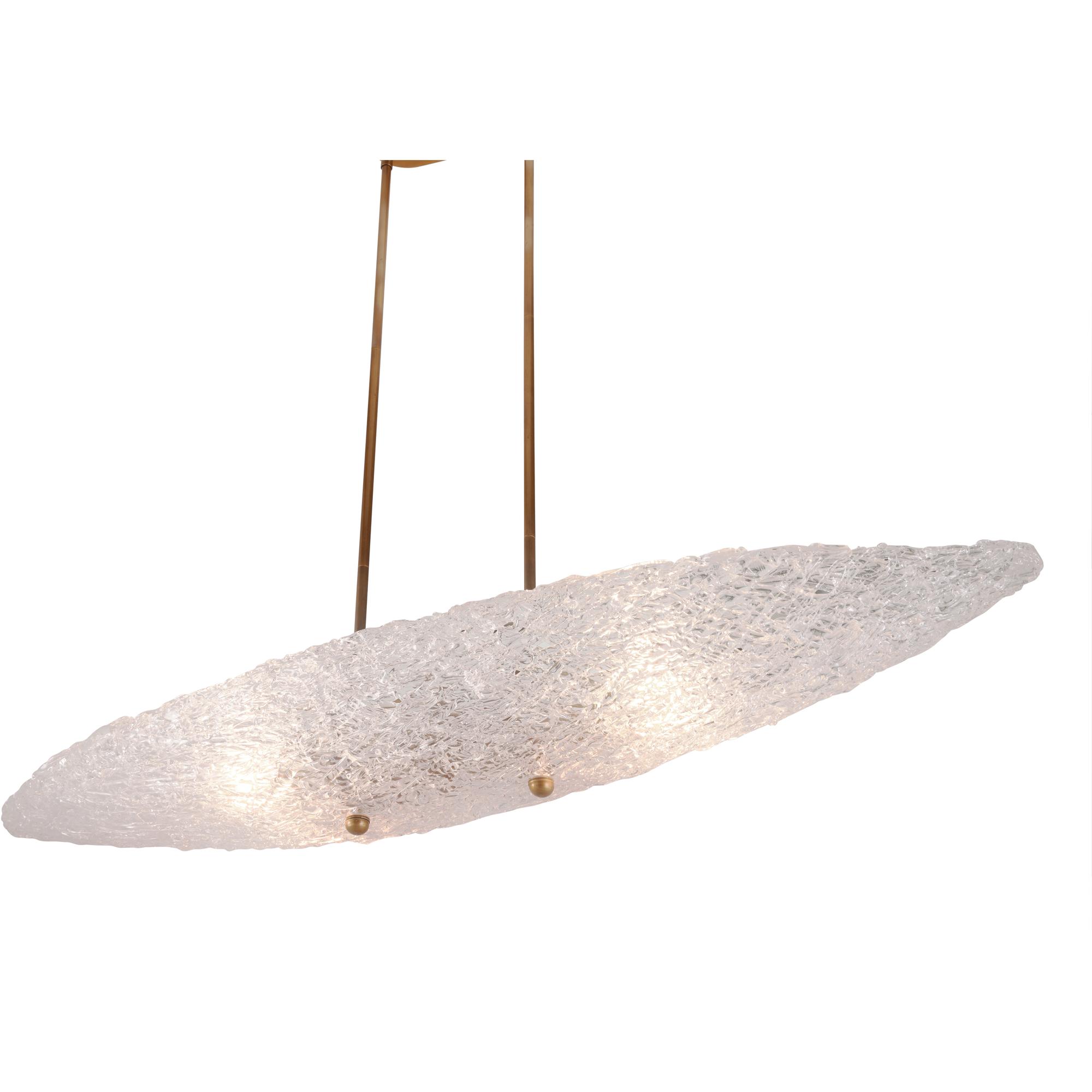 This gold chandelier features oval textured glass reminiscent of a delicate leaf, bringing an organic elegance to its radiant design. Its warm finish and nature-inspired details add a touch of refined sophistication. Comes with (2) 12″ rods and (1) 6″ rod.