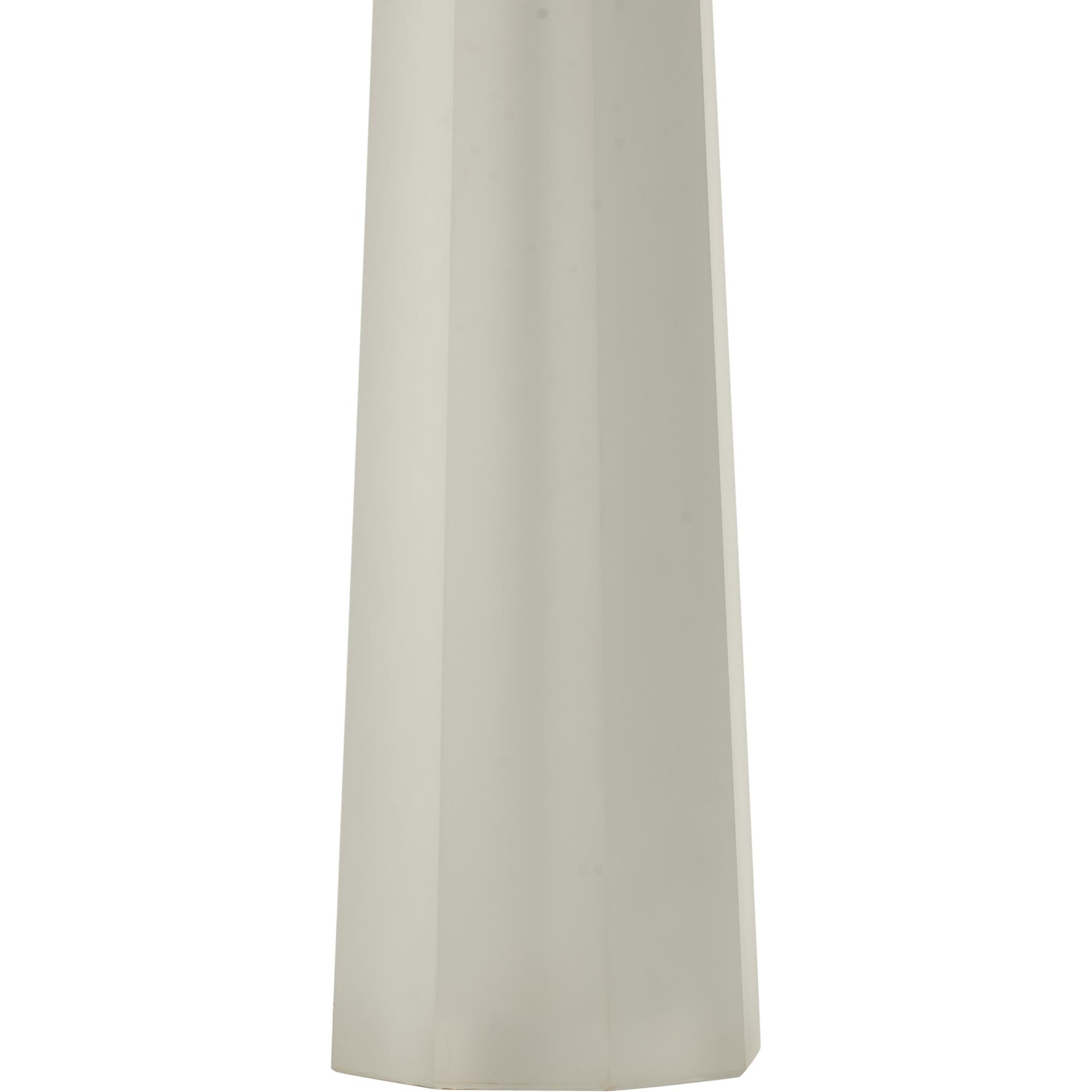 The Frosted Crystal Lamp features a beautifully designed body made of white frosted glass, exuding a soft, ethereal glow. Accented with light antique brass detailing, this lamp adds a touch of elegance and sophistication to any space. Finished with a crisp white fabric shade.