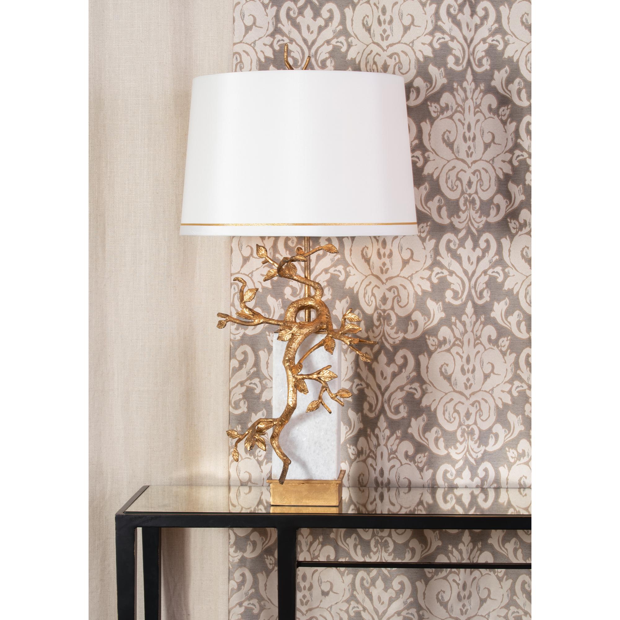 Our fujian lamp encapsulates the perfect blend of nature and glamour. The eye-catching sculptured tree branch with antique gold leaf finish is mounted on a natural white stone square column, making this piece an instant showstopper.