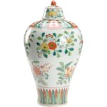 Hand painted ceramic covered urn in multicolor design. Removable lid.