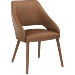 With a modern and monochromatic design, the Galen Dining Armchair will stun in any dining space. Fully upholstered in missouri cognac leather, its minimal profile features sloped arms and a cutout back rest for everyday comfort. Handle with Care: This design has been crafted with 100% leather. Leather is a natural material; as such, colour variations, markings, wrinkles, grooves and light scratches are acceptable and appreciated characteristics. No two pieces are alike. Visit our Product Care page for more information on how to ensure the lasting beauty of this piece.