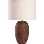 Ground your space with the earthy elegance of the Gardner Lamp. Made of glass with a rich, weathered finish that mimics aged clay, this lamp brings warmth and organic texture to any room. Topped with a clean, drum-shaped white shade, it’s a perfect blend of rustic charm and modern simplicity.