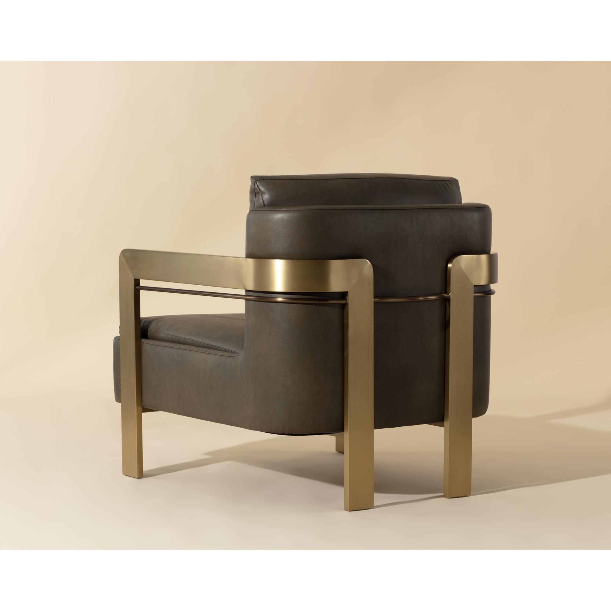 With a classic silhouette and modern appeal, the Garo Lounge Chair is a showstopper. Its sleek and angular stainless steel frame features a stunning combination of gold and dark bronze powder-coated finishes. Foam-filled cushions upholstered in smooth bravo ash faux leather make it a stylish and comfortable choice for contract or residential spaces.