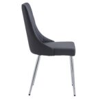 This dining table boasts a beautiful, marble-look glass top that easy to clean without all the fuss. The self-storing extension lets you fit up to 8 (or more?) chairs comfortably for those memorable family meals. The black metal legs are sturdy and continue the modern feel of the table. Composed of wood, faux leather, and metal, this side chair is a show stopper all its own. With its curved wood seat frame, seat cushion covered in faux leather upholstery with stitching details on the back, and chrome-finished metal legs, this chair unifies a multitude of elements all into one perfectly composed design. The comfortable seat allows for hours of conversation around the dinner table, while the slim, tapered look of the metal legs adds a splash of sophisticated design.