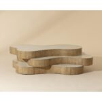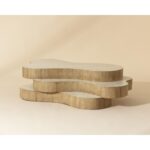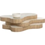 The Geddes Coffee Table is a modernist art piece with a geometric play on curved forms and nuanced layers. Low to the ground and made entirely of concrete that is hand finished with a faux travertine and faux wood look. A standout on its own or can be paired with decor to imbue an organic feel to any indoor or outdoor living space.