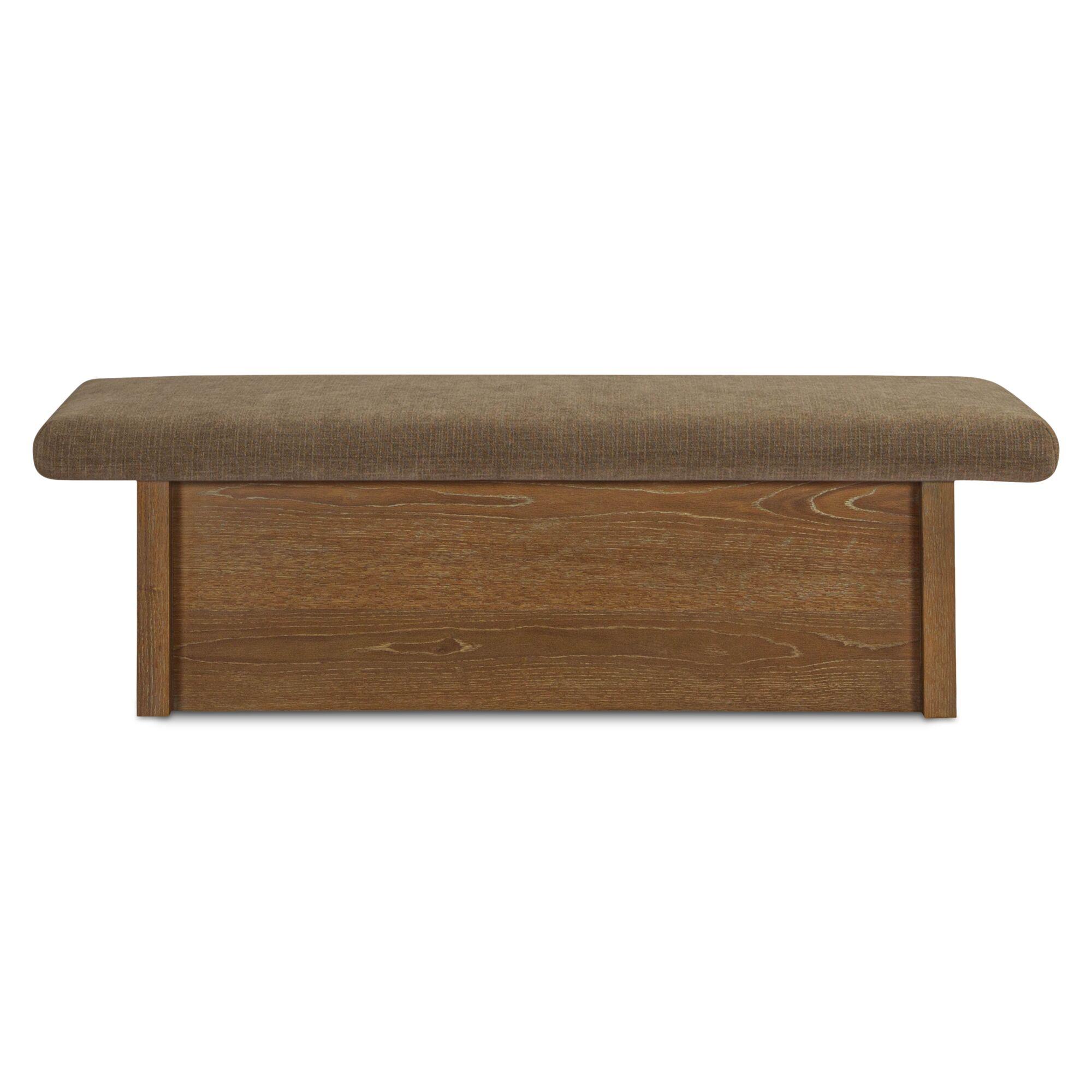 - Soft, Grounded Profile: A tailored bench silhouette with a warm taupe seat and wire-brushed oak veneer base that keeps the look clean and composed.