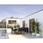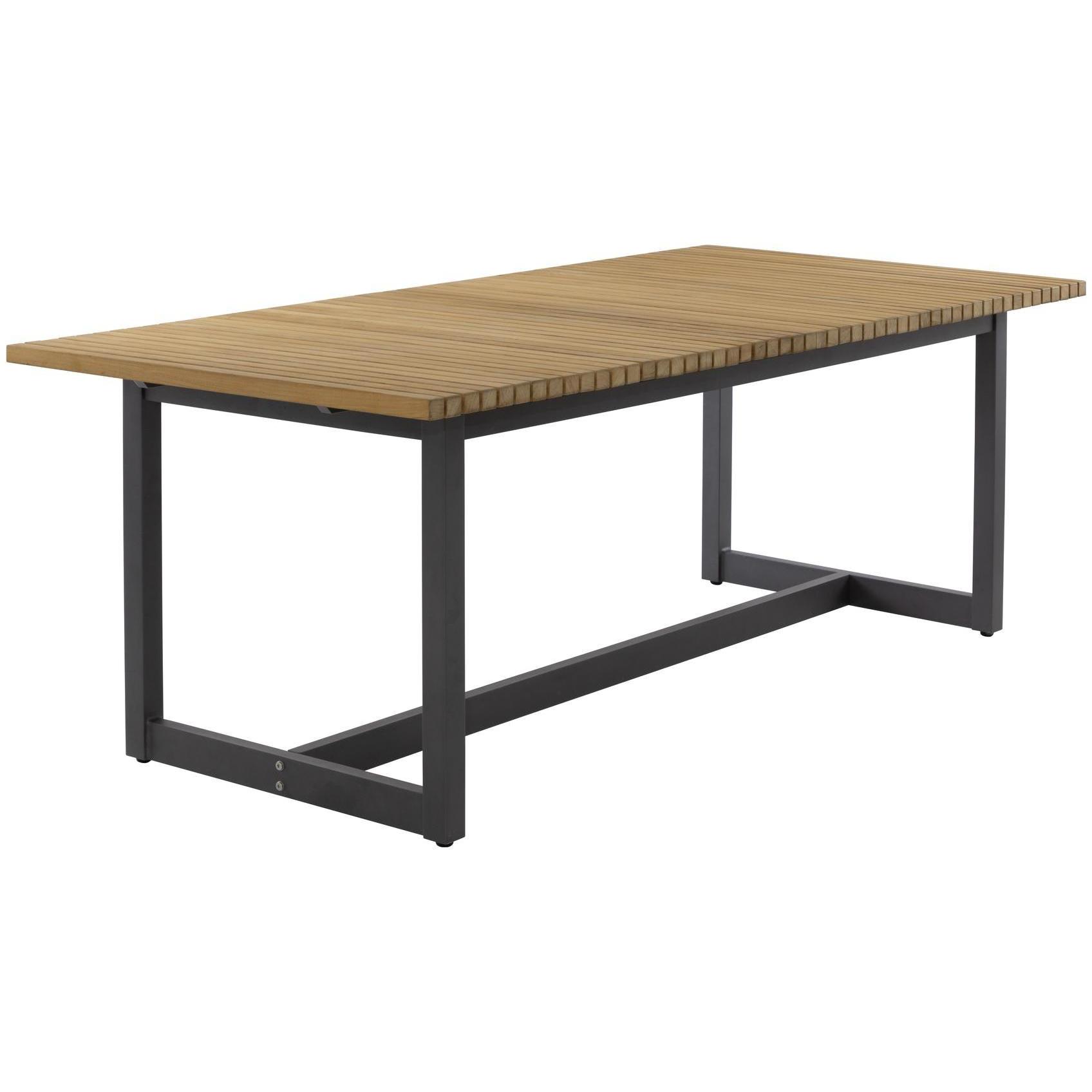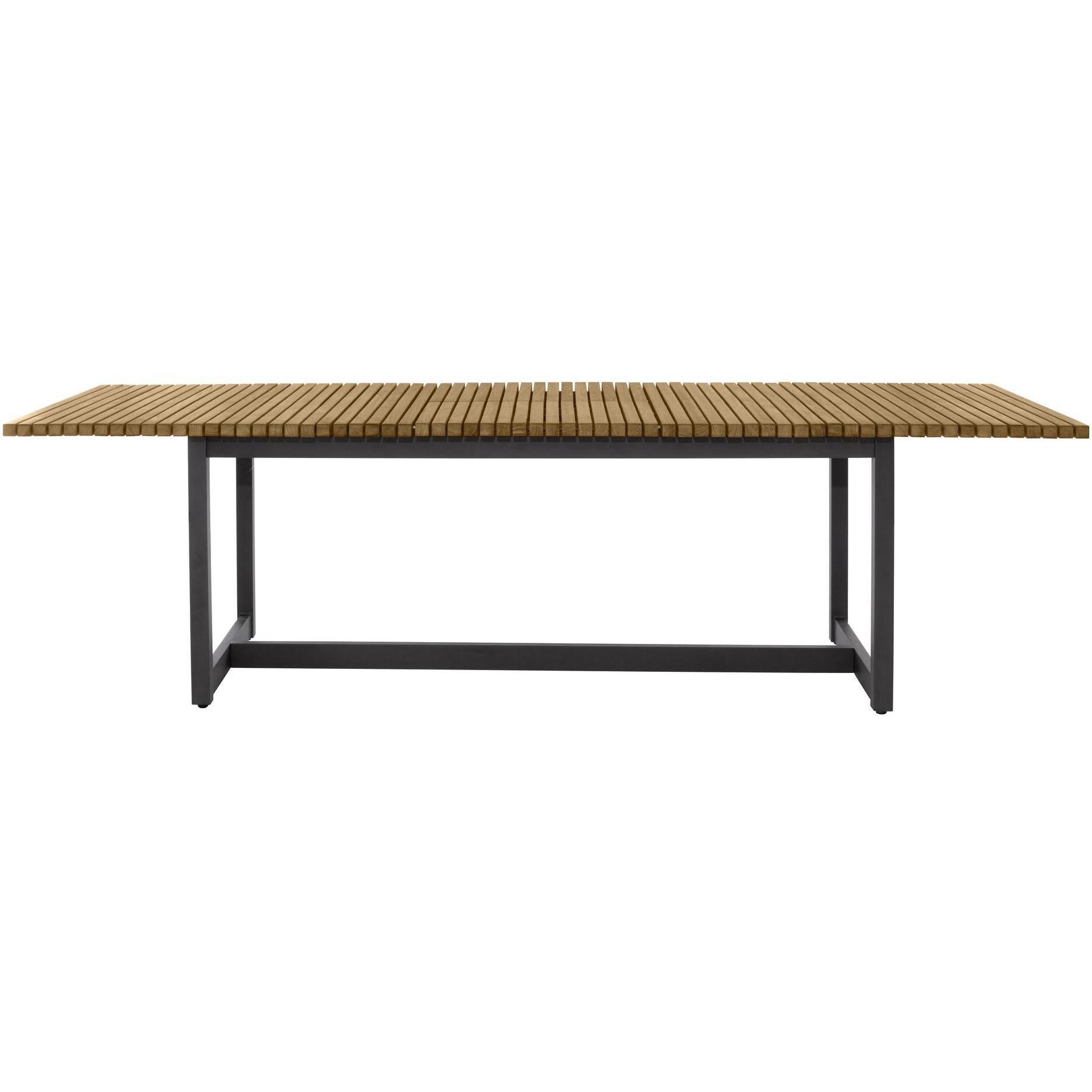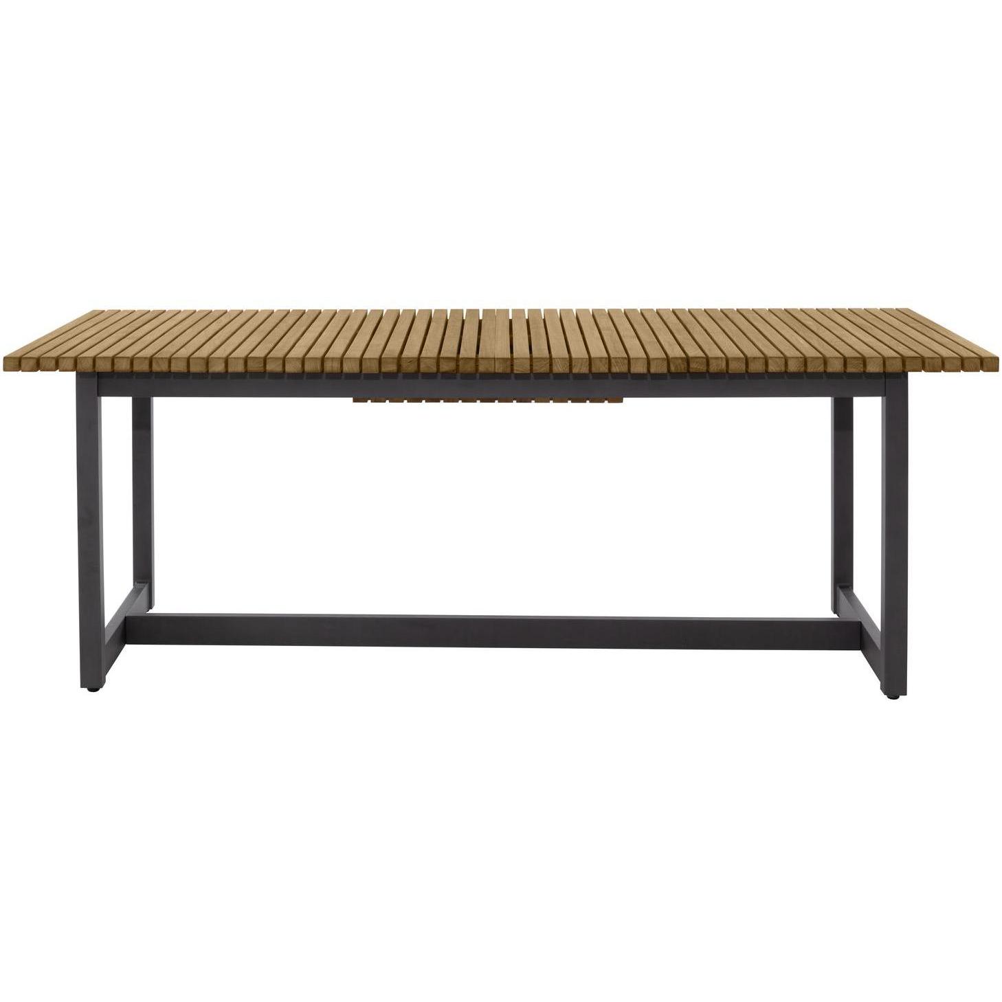 Appreciate warmth and sunlight while seated in an outdoor dining space inspired by the Arizona desert. This modern extension table features a powder-coated aluminum base with a natural teak wood top. Extends up to 104″. Suitable for indoor and covered outdoor spaces.