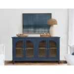 The Genova consoles crafted from lightly distressed pine and okume wood provide a contemporary twist on mid-century aesthetics, with vibrant colors perfect for complementing monochromatic spaces or adding a splash of vividness. They are guaranteed to be showstoppers in any room.