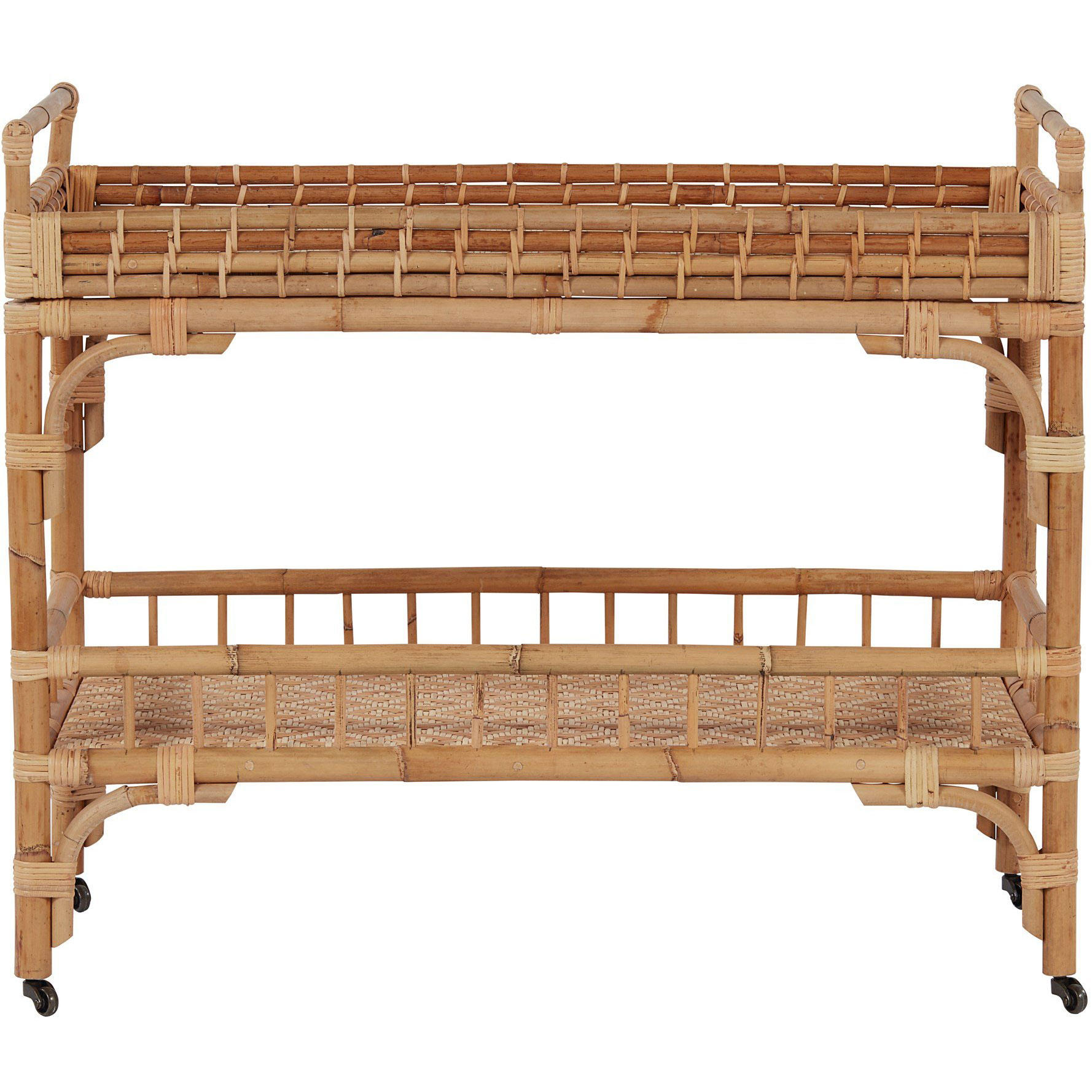 Coastal cocktails coming right up! Celebrate and relax with the 5 O’Clock Bar Cart featuring a rattan, double-tiered body and casters for added convenience.
