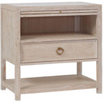 The perfect bedside companion, the Getaway Drawer Nightstand marries the best of function and coastal style with open-air storage, a spacious drawer, smooth stone inset top, pull-out shelf and gold ring pull hardware