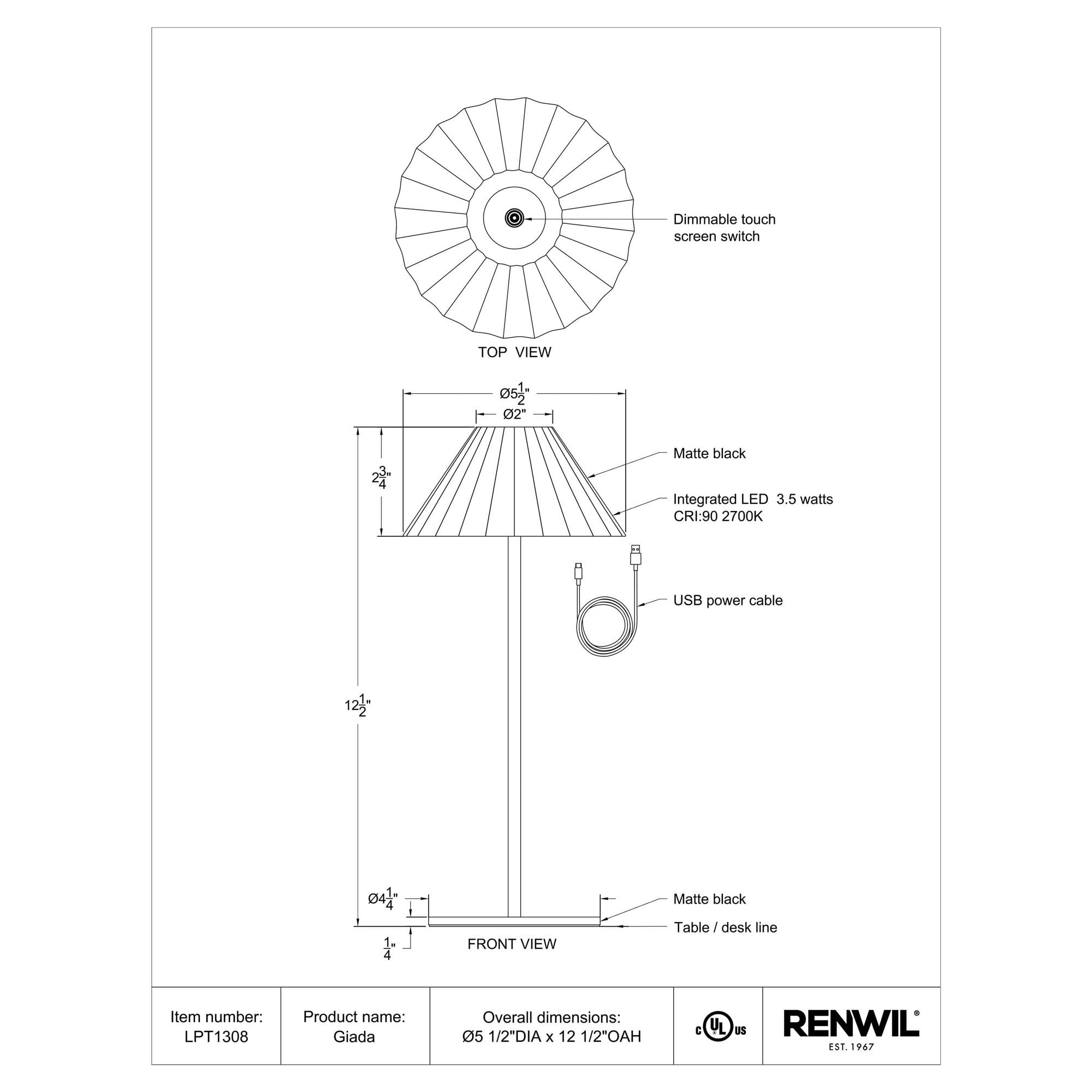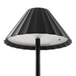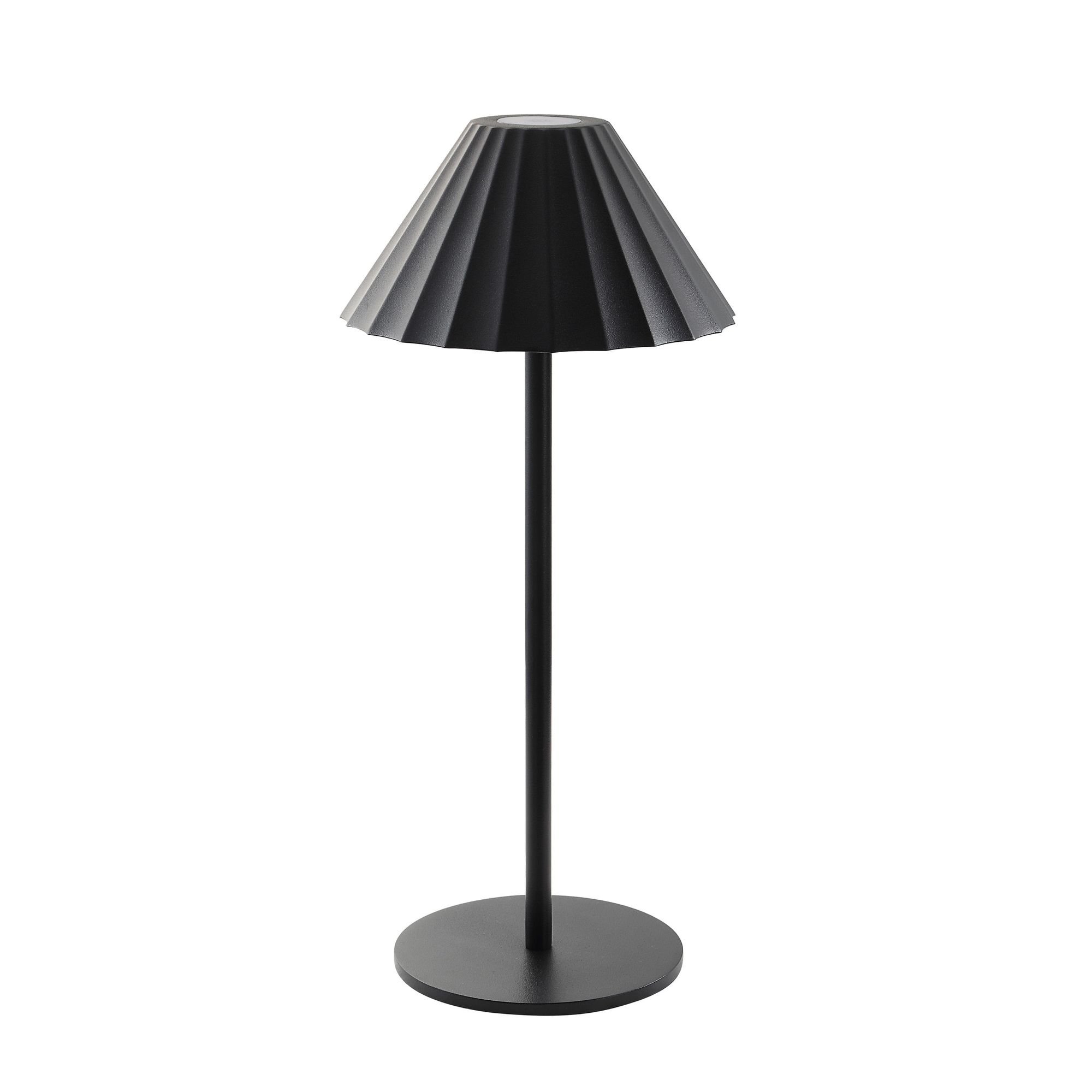 Illuminate any space, even when there’s no electrical outlet available, with this dimmable, battery-operated LED table lamp. Featuring sleek lines, a pleated acrylic lampshade, and an on-trend all-over matte black finish, this light turns on and off with a simple tap to elevate the look of any interior.