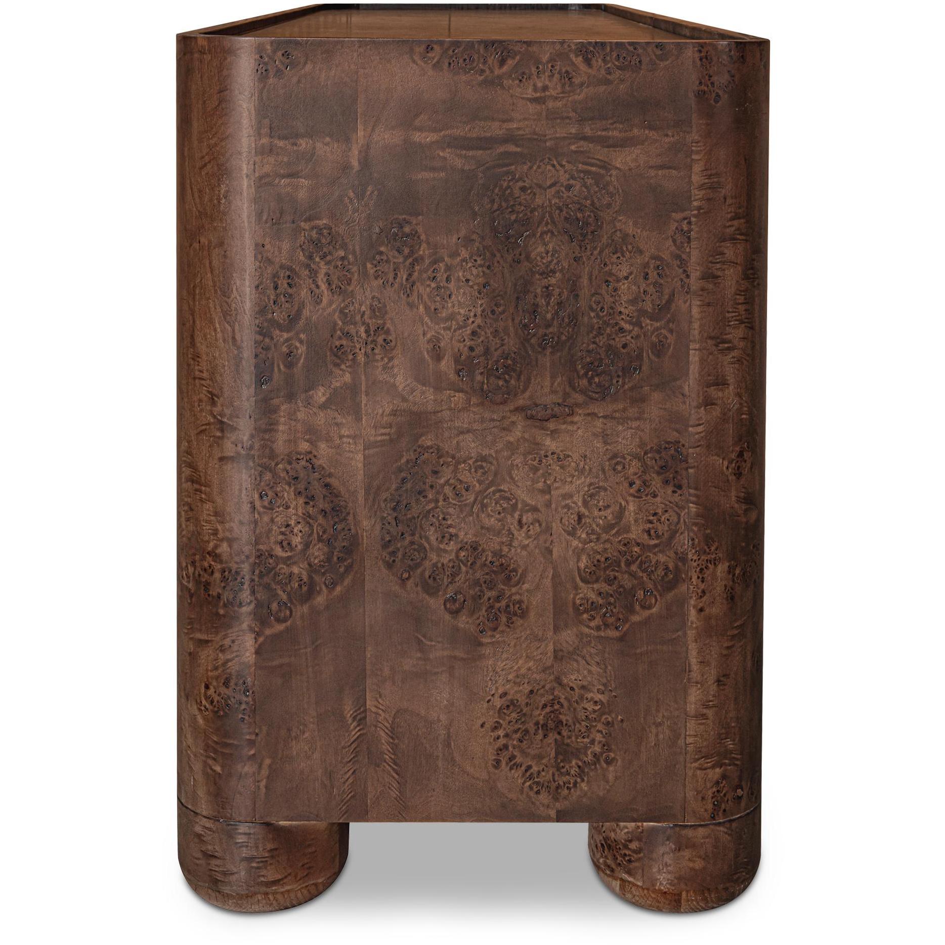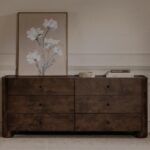The Gibson 6 drawer dresser’s fluid design seamlessly integrates the leg panel into the frame, creating a captivating visual flow. Crafted from solid oak with beautifully grained burl veneer, this piece marries durability with sophistication. Playful lip detailing and 6 soft-close drawers add unexpected charm with its timeless appeal and meticulous craftsmanship.