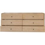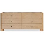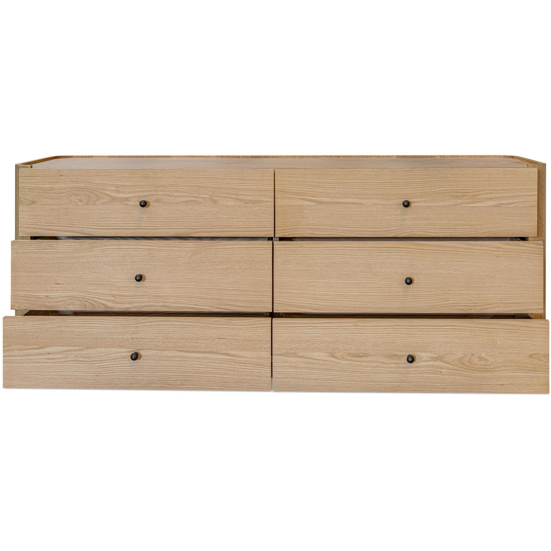 The Gibson 6 drawer dresser’s fluid design seamlessly integrates the leg panel into the frame, creating a captivating visual flow. Crafted from solid oak with oak veneer, this piece marries durability with sophistication. Playful lip detailing and 6 soft-close drawers add unexpected charm with its timeless appeal and meticulous craftsmanship.