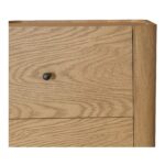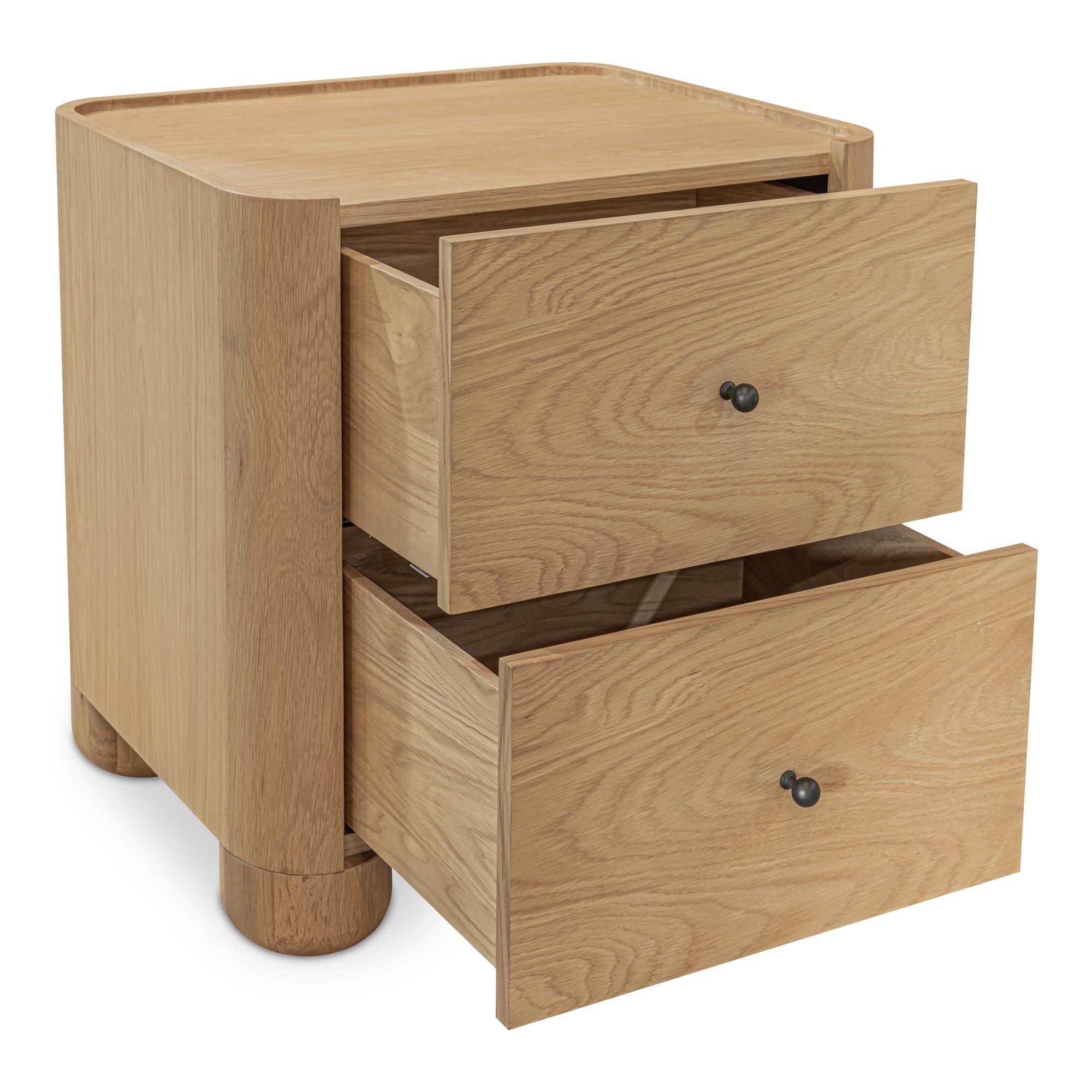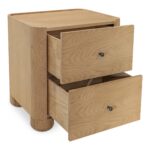 The Gibson nightstand’s fluid design seamlessly integrates the leg panel into the frame, creating a captivating visual flow. Crafted from solid oak with oak veneer, this piece marries durability with sophistication. Playful lip detailing and a soft-close drawer add unexpected charm with its timeless appeal and meticulous craftsmanship.