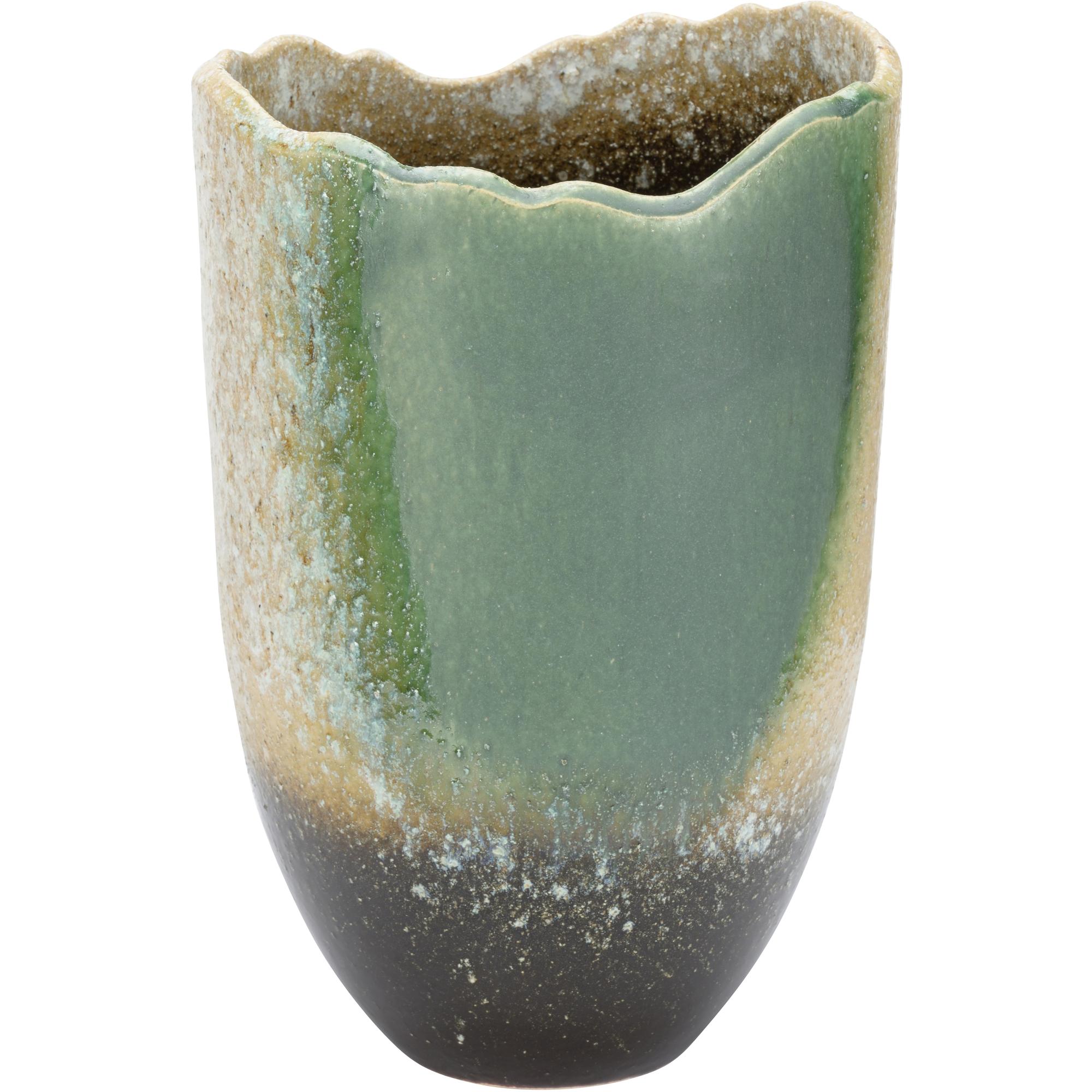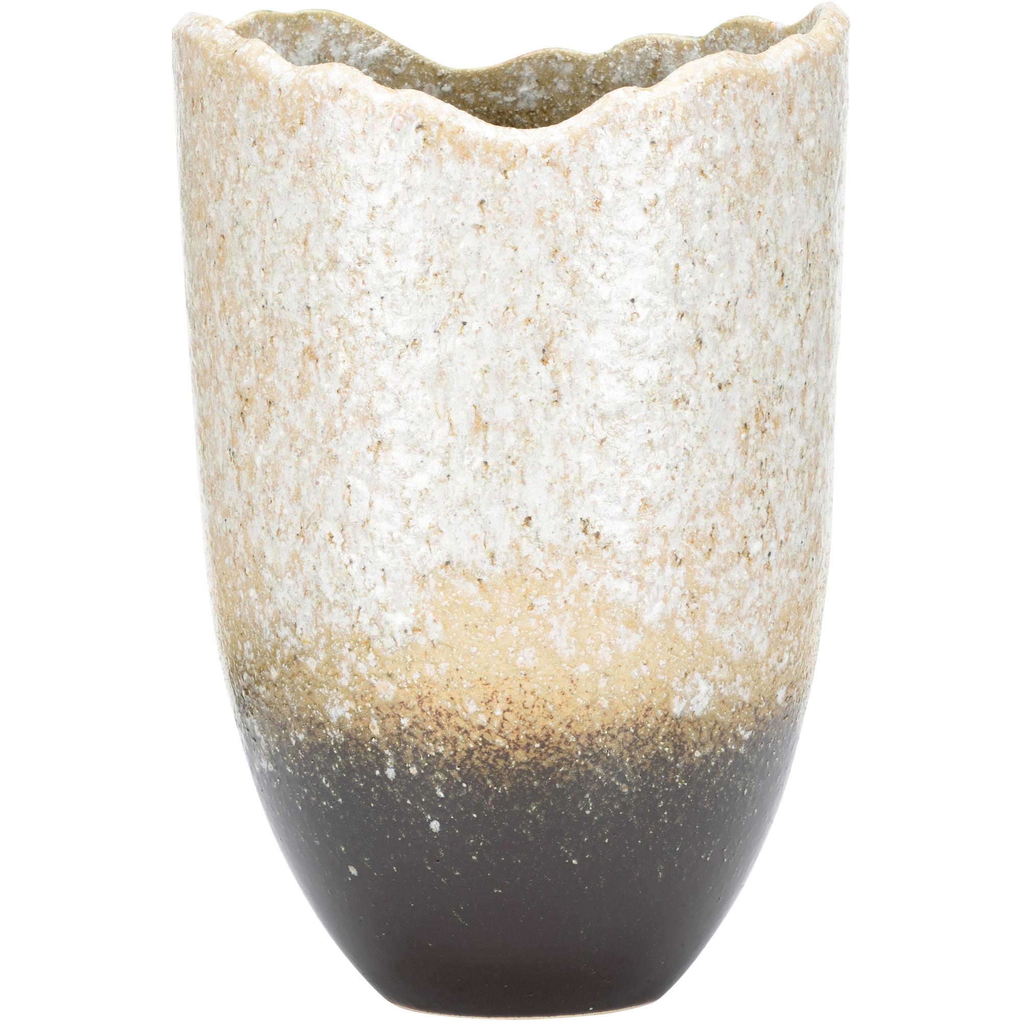 The Gizagiza Vase, named for the jagged edge and part of the Shiga collection, is hand turned and uniquely finished in one of six ancient kilns in Japan. Made in Japan.