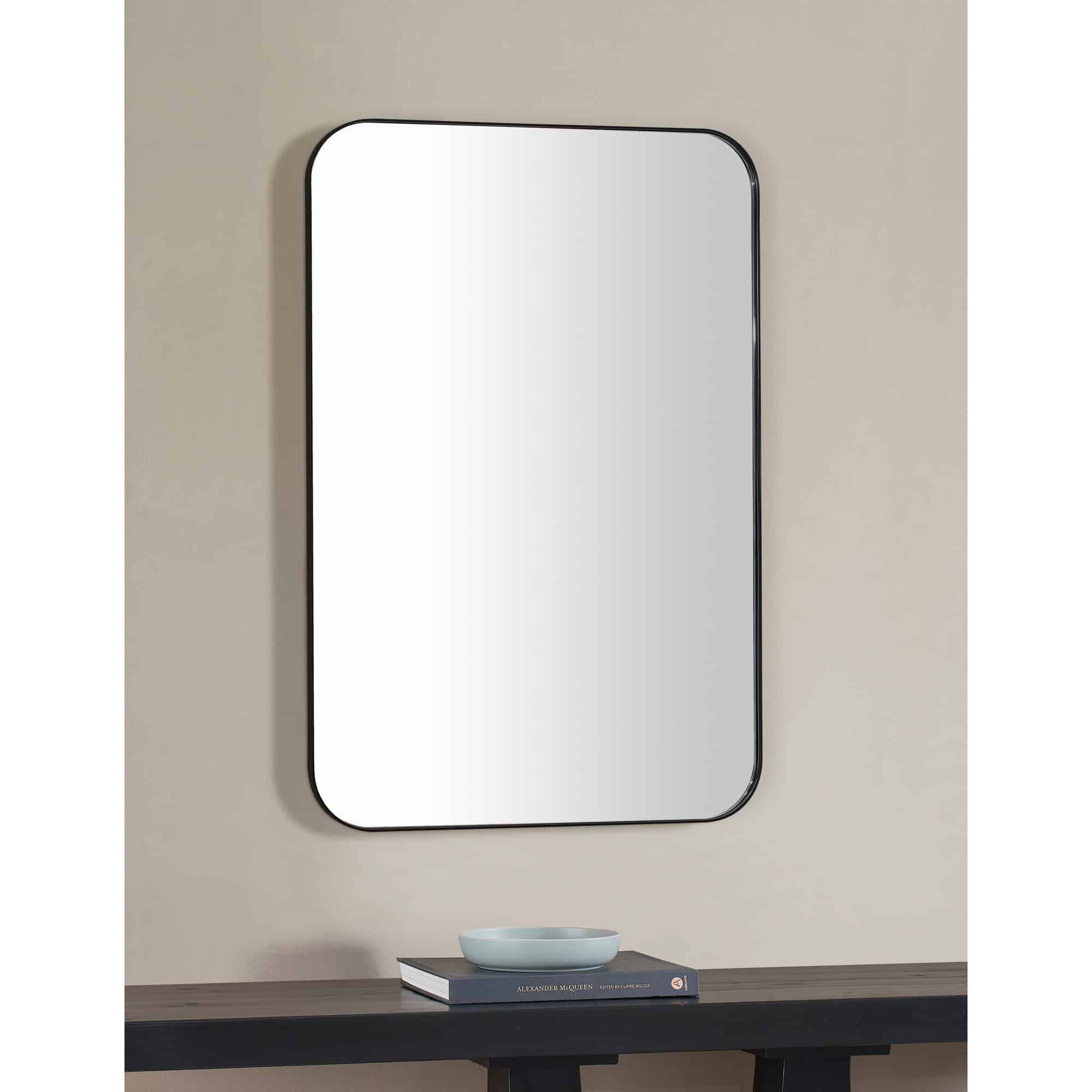No matter if it’s set within the bedroom, or entryway space, this rectangle mirror holds a comforting quality thanks to its minimal structure and rounded edges. At 24 by 36 inches, it develops a new impact in the interior when set horizontally or vertically. Featuring a sleek iron frame painted in a matte black finish, it is idyllic in industrial and contemporary rooms alike.