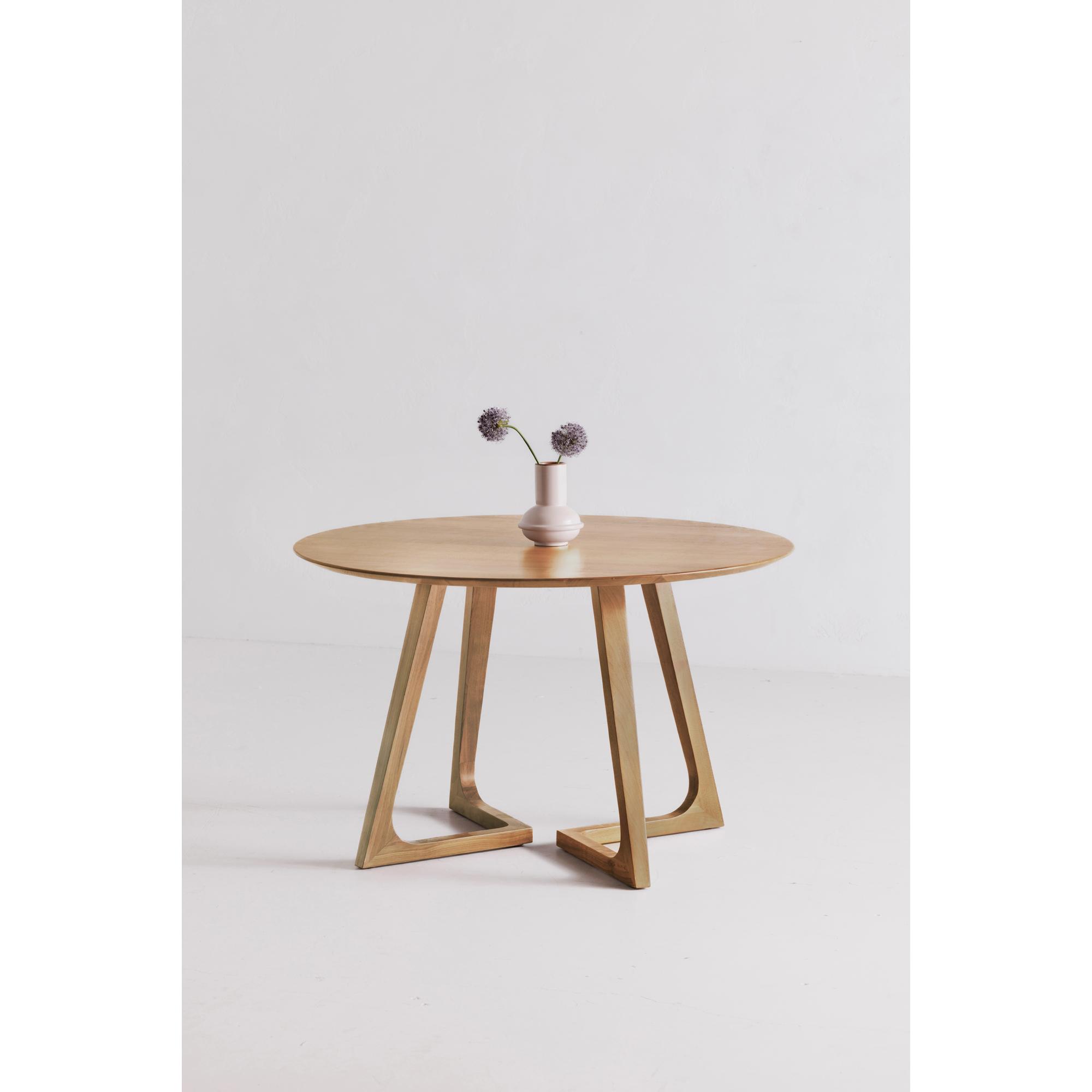 Made from solid oak, the Godenza Dining Table’s mid-century modern design provides a subtle sophistication. Its round table design makes the most of smaller dining spaces.