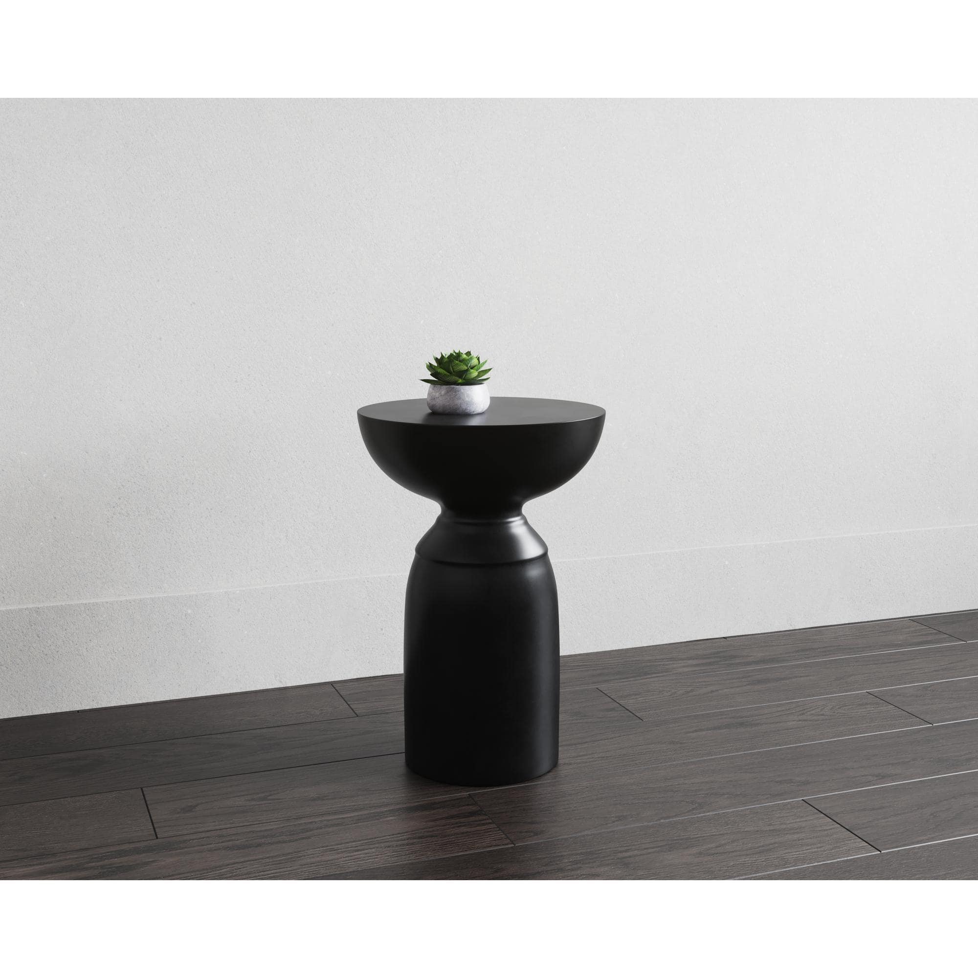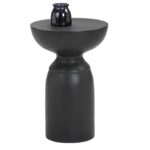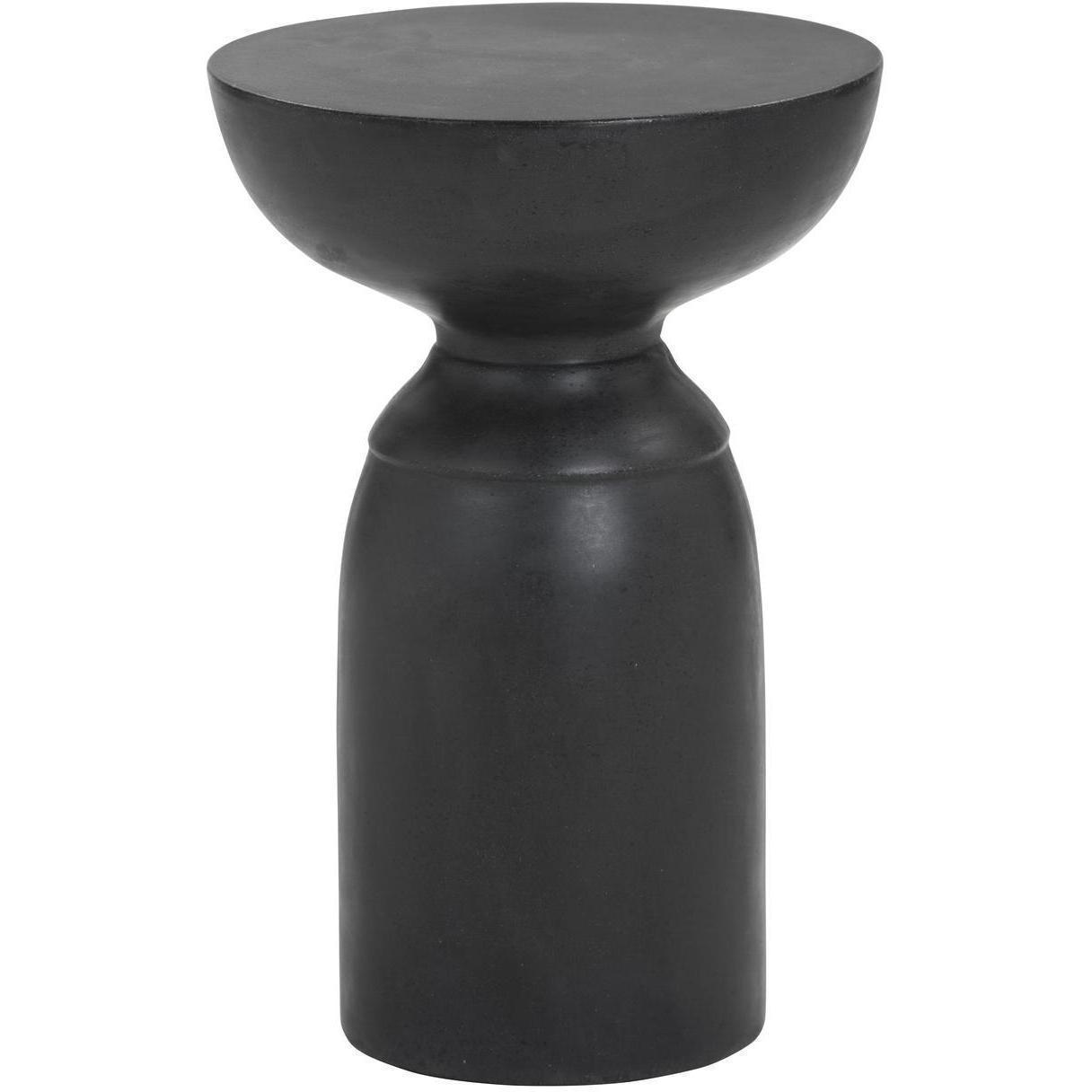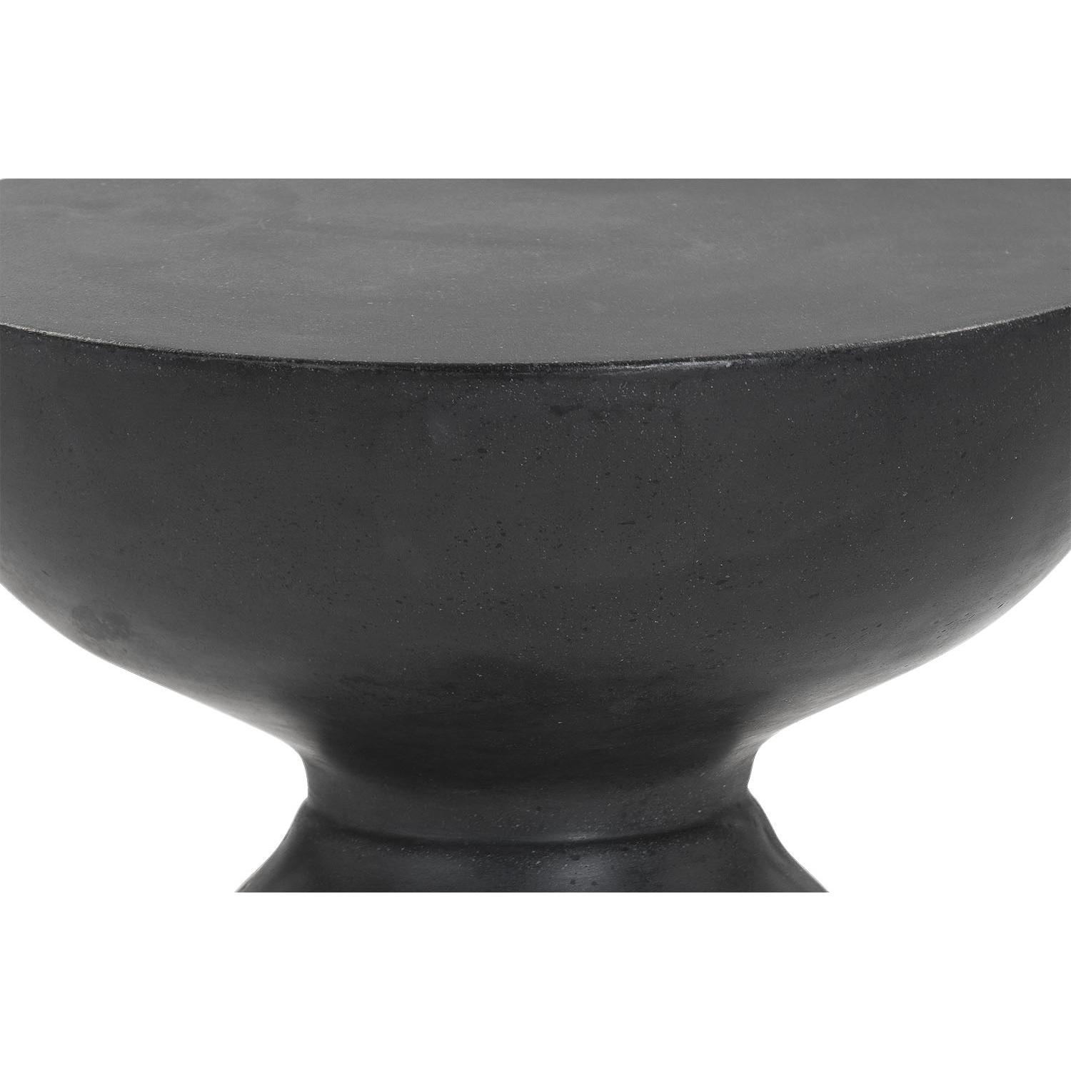 A compact and gracefully sculpted end table. Made from concrete with a painted black finish. This versatile and attractive piece is