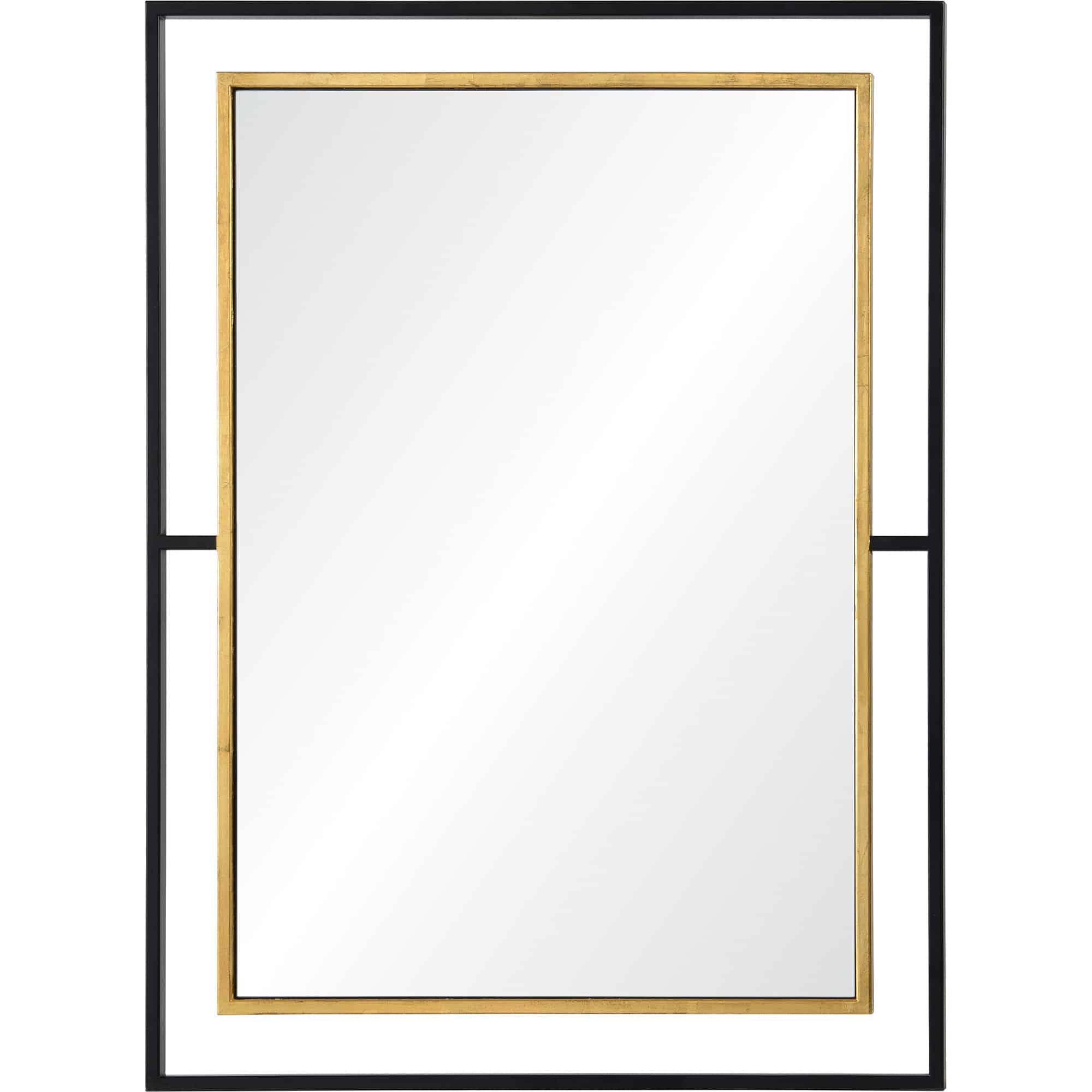 Elegance gets a contemporary twist in this geometrically designed mirror. Featuring a juxtaposition of black powder coated metal and gold leaf finished wood, this piece offers versatility without sacrificing style. Elevate a modern foyer by hanging it above the entryway table or chair.