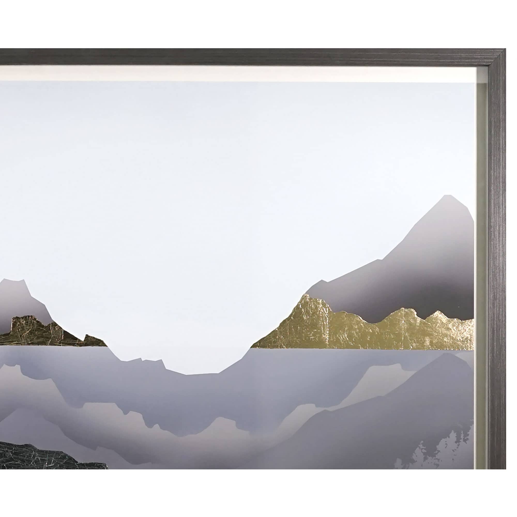 Incorporate the beauty of the great outdoors with this minimalistic artwork from our Luxe Art collection. This piece is a giclee print on archival paper and features hand embellished gold and silver leaf accents along with an elevated float mounting. Finished with a brushed solid pine wood frame in charcoal. Due to the reflective nature of gold and silver leaf, images on site may not capture the artisanal characteristics precisely. Hand-finished items will vary from piece to piece, resulting in a truly one-of-a-kind artwork.