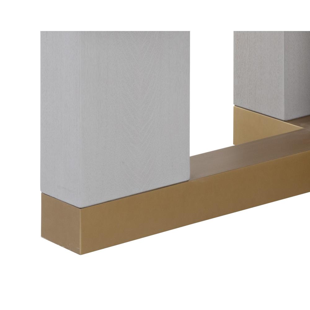 Create a dining space full of futuristic appeal with this contemporary dining table. Features a gaunlet grey wood veneer table top with solid poplar wood legs. Completed with an accenting rustic bronze metal base. As wood is an organic, porous material, these pieces will contain natural variation of texture and may also exhibit fine indentations and cracks. Wood pieces will also display a disparity of colour and grain, and visible knots and burls that add to the character of each piece.