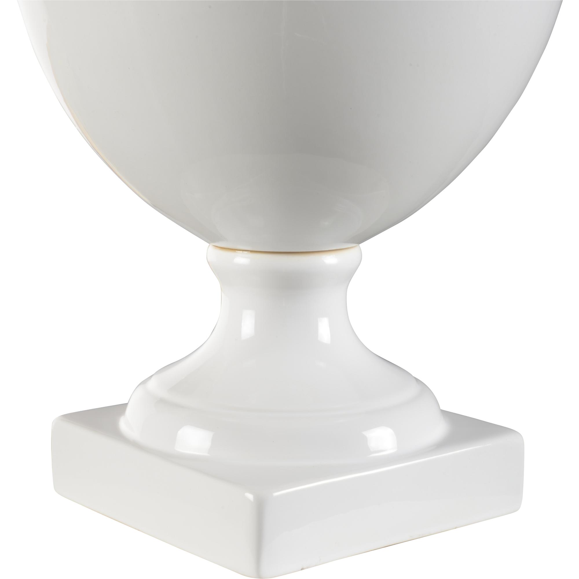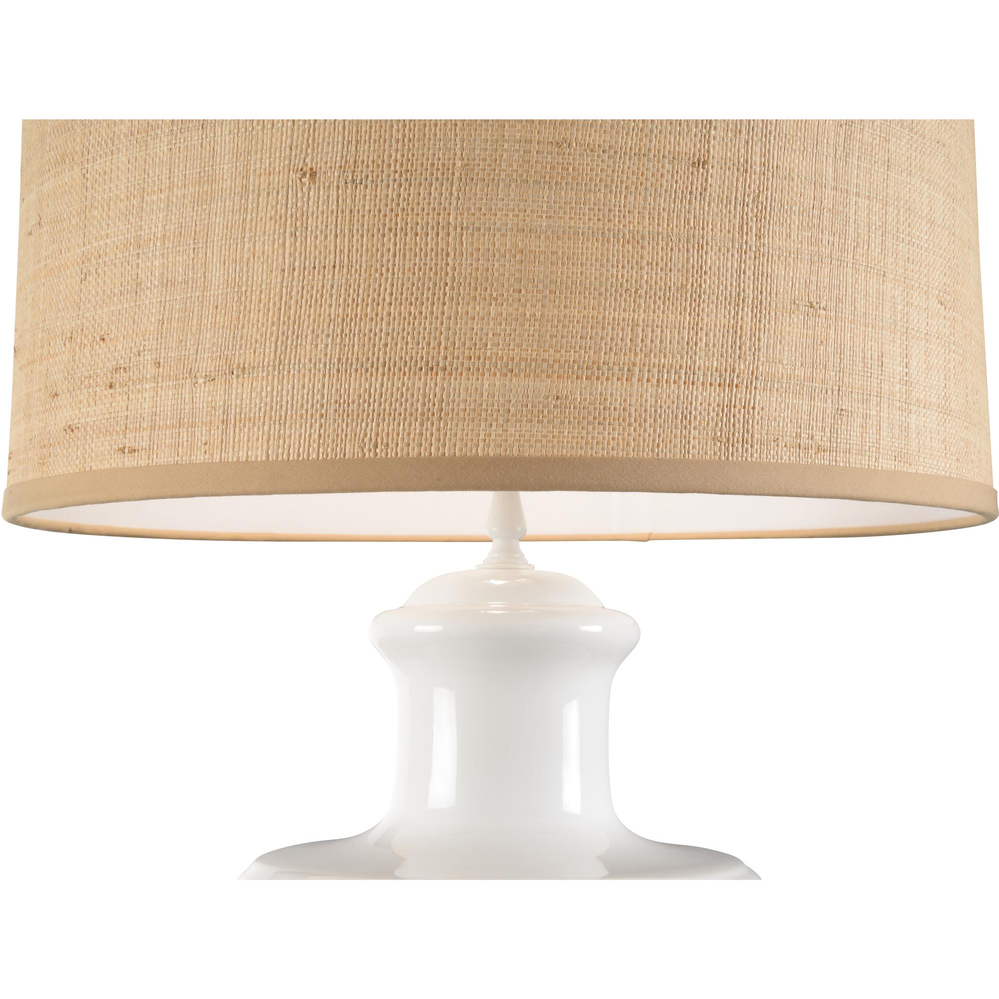 Greenwich Ceramic Lamp is a transitional white glazed Italian ceramic table lamp. An off-white linen drum shade gives an elegant touch and helps to create ample illumination throughout your space.