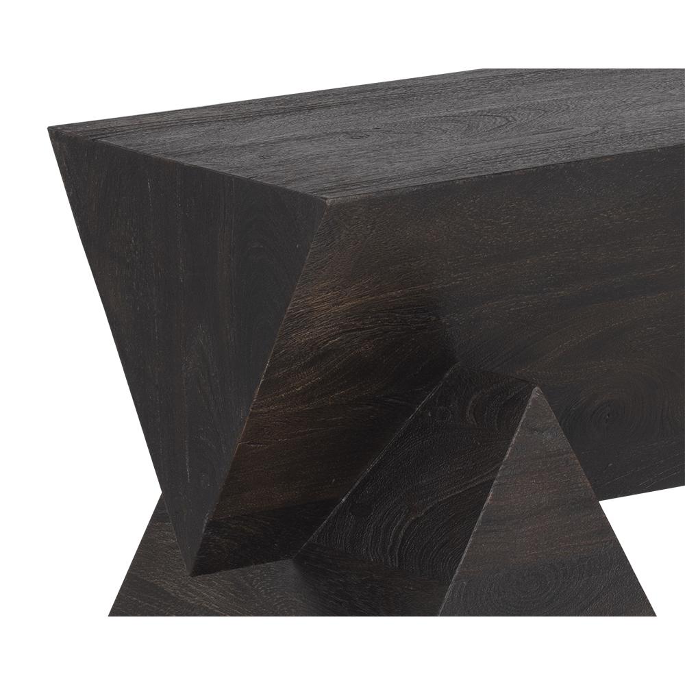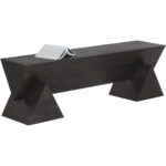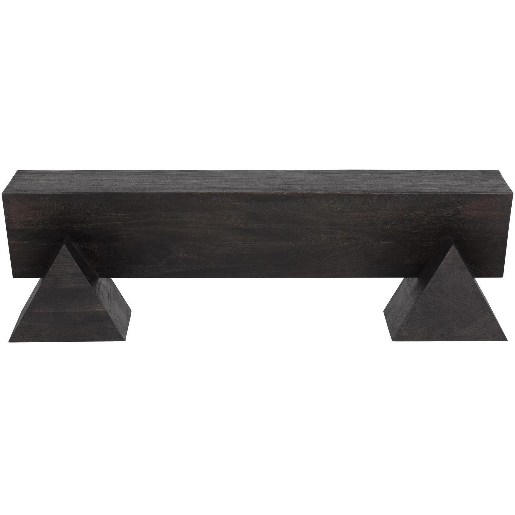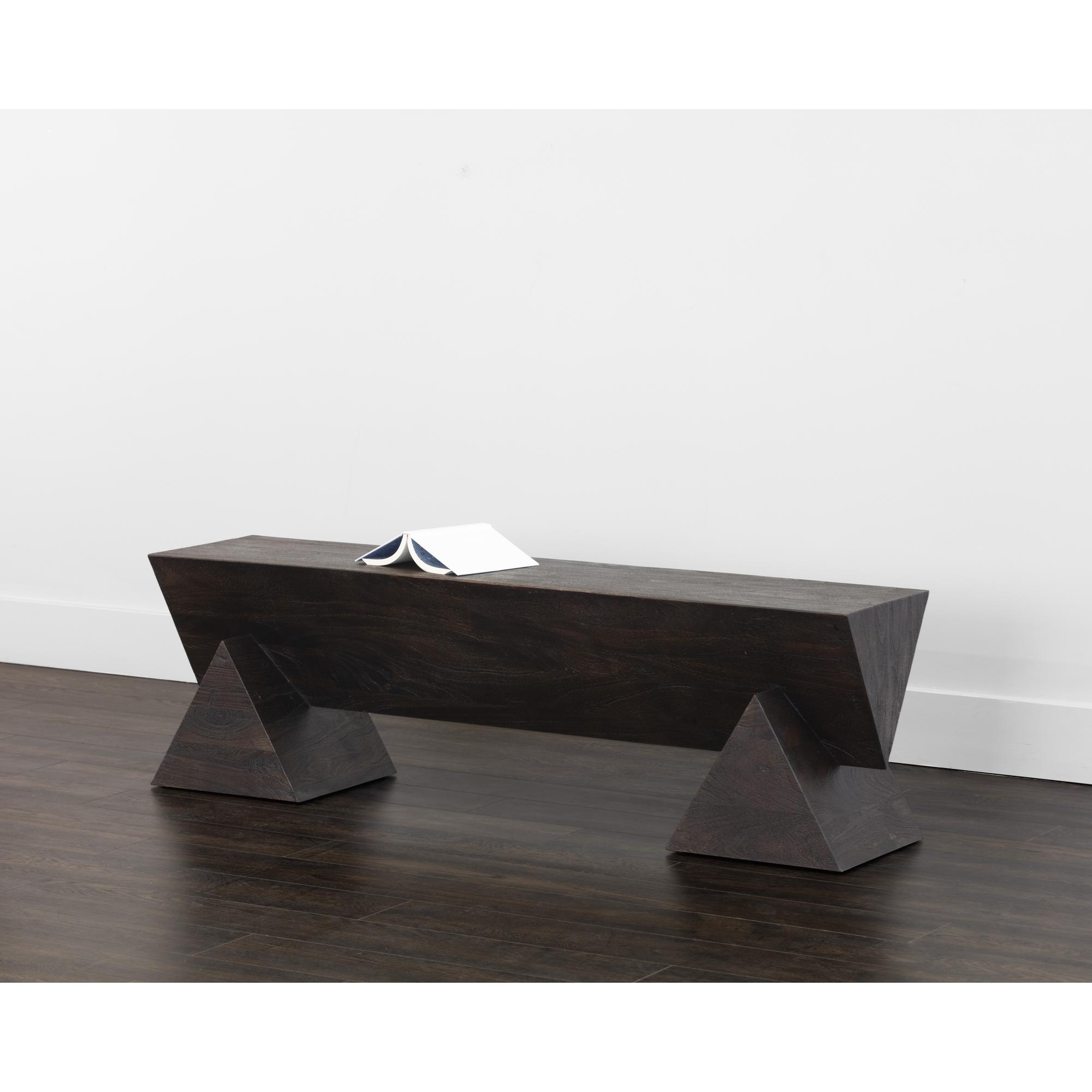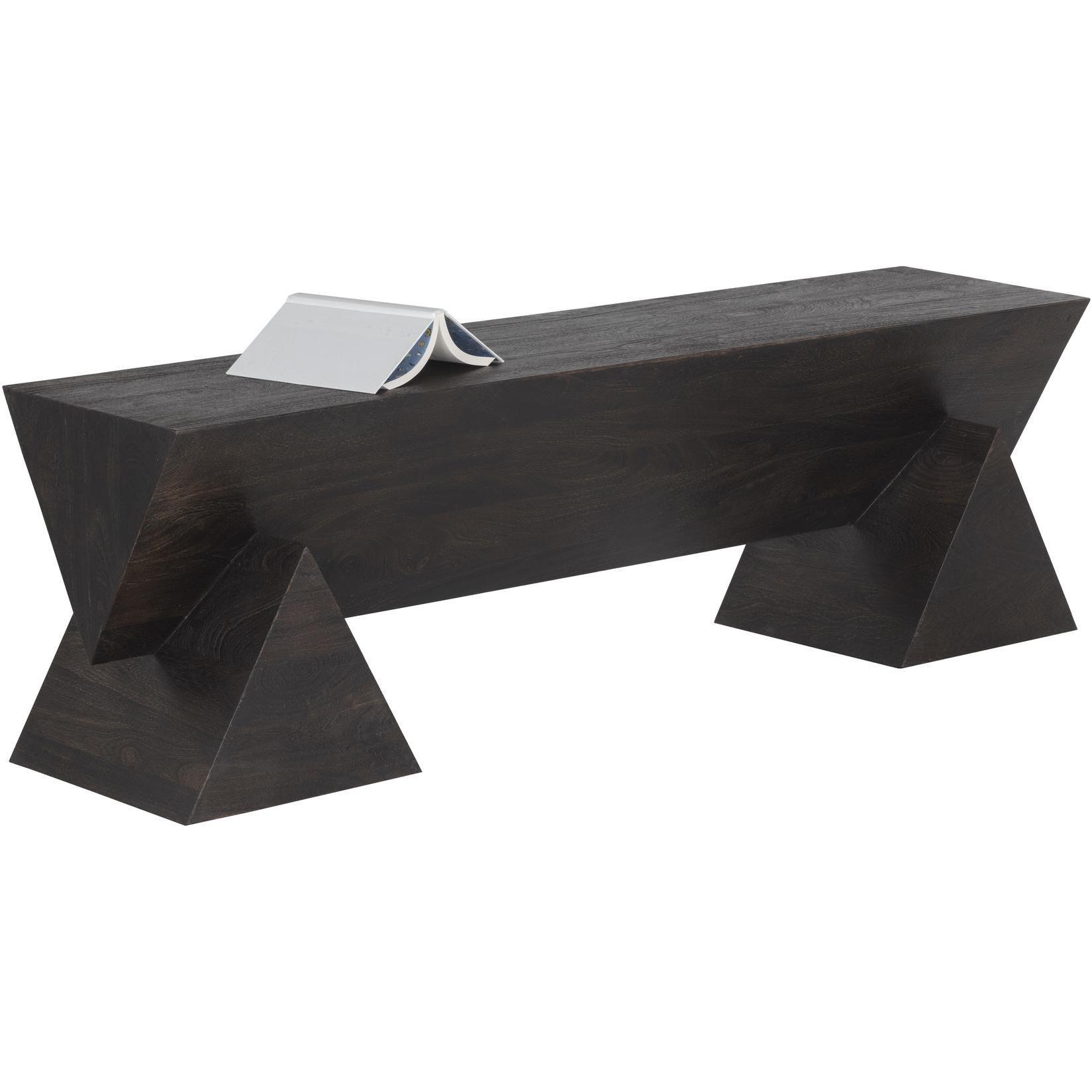 The Gregor Bench exudes drama with its unique angular frame constructed from dark brown acacia wood. Provides ample seating in contemporary environments. As wood is an organic, porous material, these pieces will contain natural variation of texture and may also exhibit fine indentations and cracks. Wood pieces will also display a disparity of colour and grain, and visible knots and burls that add to the character of each piece. Made in India. With refined craftsmanship, this design was brought to life by skilled local artisans. Due to the nature of handcraftsmanship, unique imperfections such as fissures, markings and variations in colour and shape are welcomed and appreciated characteristics for a truly one-of-a-kind piece.