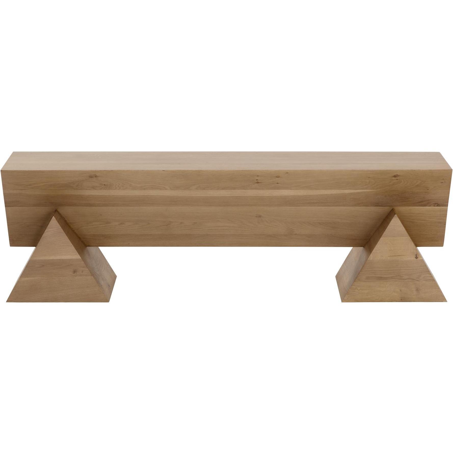 The Gregor Bench exudes drama with its unique angular frame constructed from rustic oak wood. Provides ample seating in contemporary environments. As wood is an organic, porous material, these pieces will contain natural variation of texture and may also exhibit fine indentations and cracks. Wood pieces will also display a disparity of colour and grain, and visible knots and burls that add to the character of each piece.