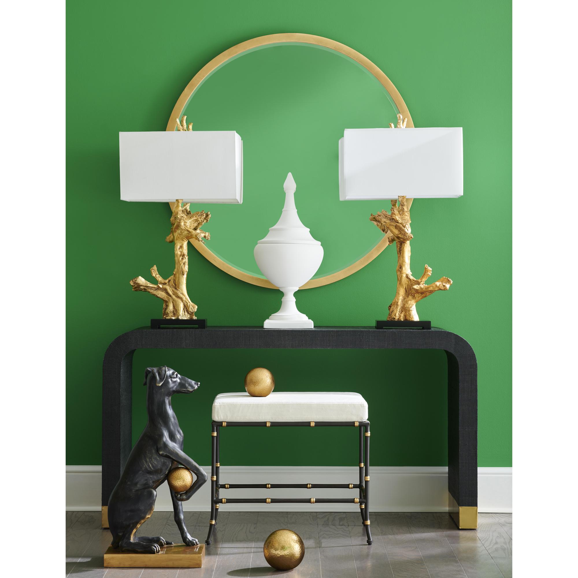 Wonderful greyhound sculpture in black composite on a gold leaf base. Designed by Claire Bell.