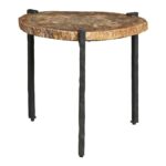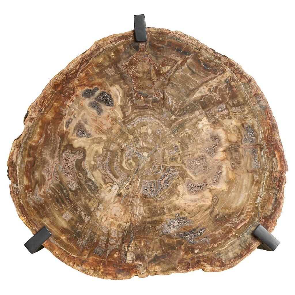 The Griffith Park Bunching Tables are a captivating duo that combines the beauty of natural stone with the strength of metal. The petrified wood stone tops, with their unique textures and colors, contrast dramatically with the sturdy cast iron bases. This dynamic pairing creates a striking visual statement, perfect for any living room or entryway.
