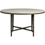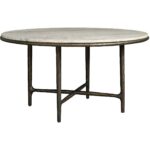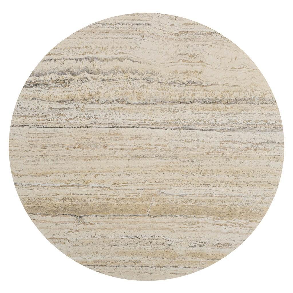The Griffith Park Round Dining Table is a captivating blend of modern elegance and natural beauty. Its sleek metal base and smooth white travertine top create a striking contrast, while the X-shaped design adds a touch of architectural interest.
