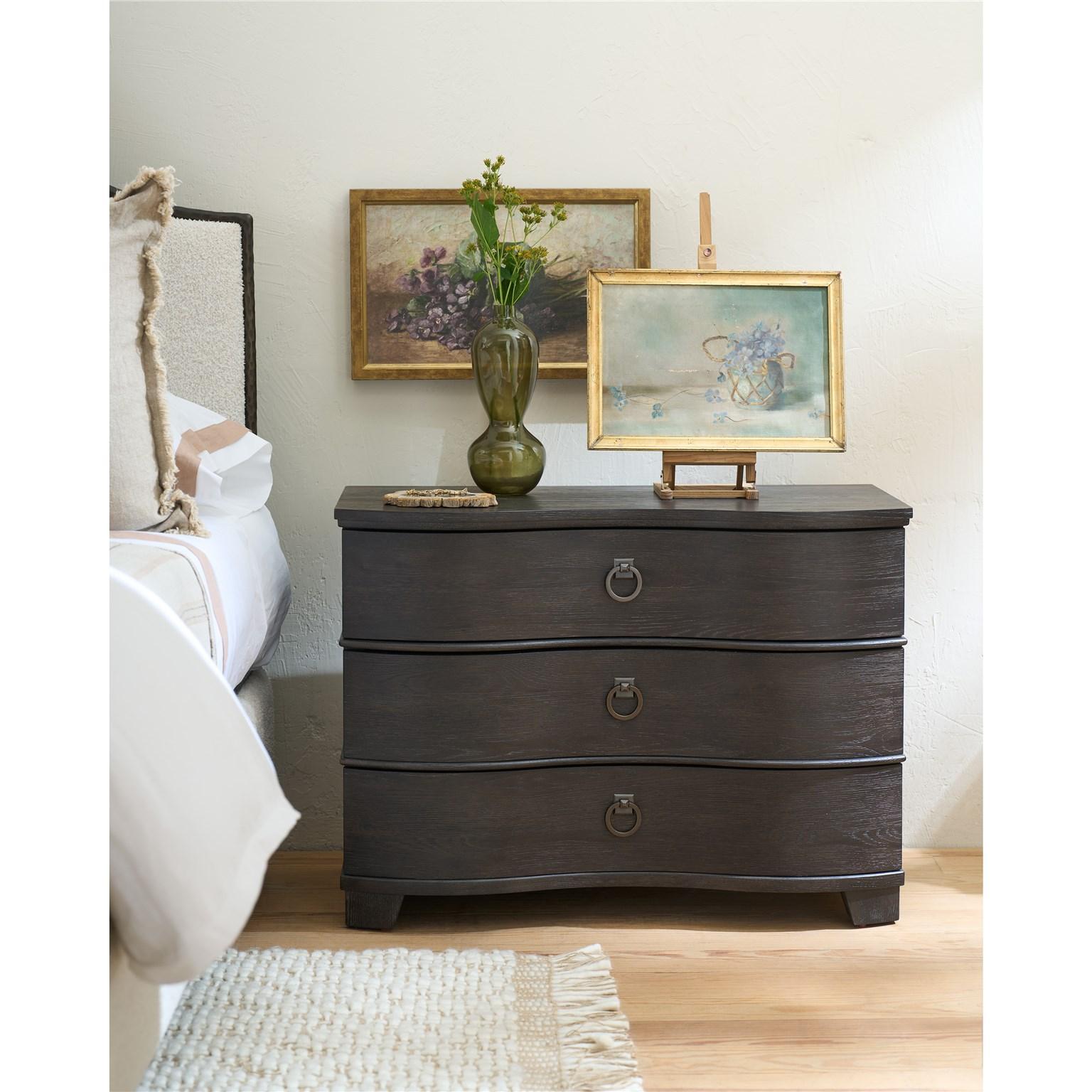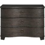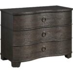 The Serpentine Chest is a captivating piece of furniture that effortlessly blends modern elegance with traditional craftsmanship. Its rich, dark brown hue and bronze ring pulls create a sophisticated aesthetic, while the curved tabletop adds a touch of unique flair.
