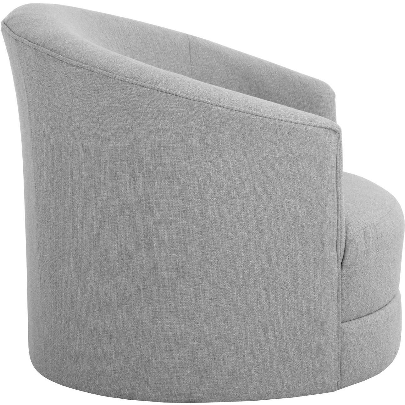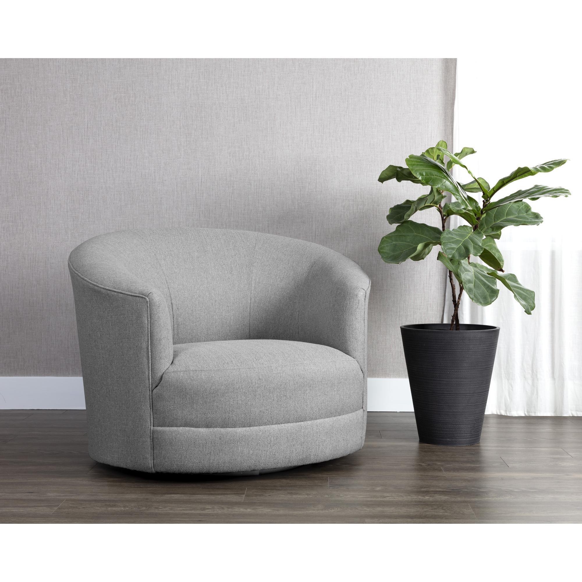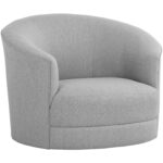 Make an earth-conscious decision while browsing the DOMESTIC by SUNPAN collection. This curvy and contemporary swivel armchair from our DOMESTIC collection offers refined style with great comfort. Stocked in liv dove performance fabric. Coordinating sofa also available. Liv performance fabric features 32% REPREVE polyester; it is moisture repellent, durable and easy to clean. REPREVE polyester is a high-quality yarn made from recycled post-consumer plastic bottles.