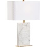 Our Gwen Lamp features a striking marble base, showcasing the natural beauty and unique patterning of the stone. The raw, unpolished texture of the marble gives it a rustic yet elegant appeal, contrasted beautifully with the smooth and modern brass accents that frame the base and cap the design. A rectangular off-white linen shade complements the robust form of the marble, casting a soft, ambient light that enhances the stone’s organic features. Ideal for adding a touch of luxury and natural element to any contemporary living space, office, or bedroom, this lamp not only illuminates but also serves as a compelling piece of decor.