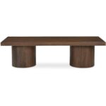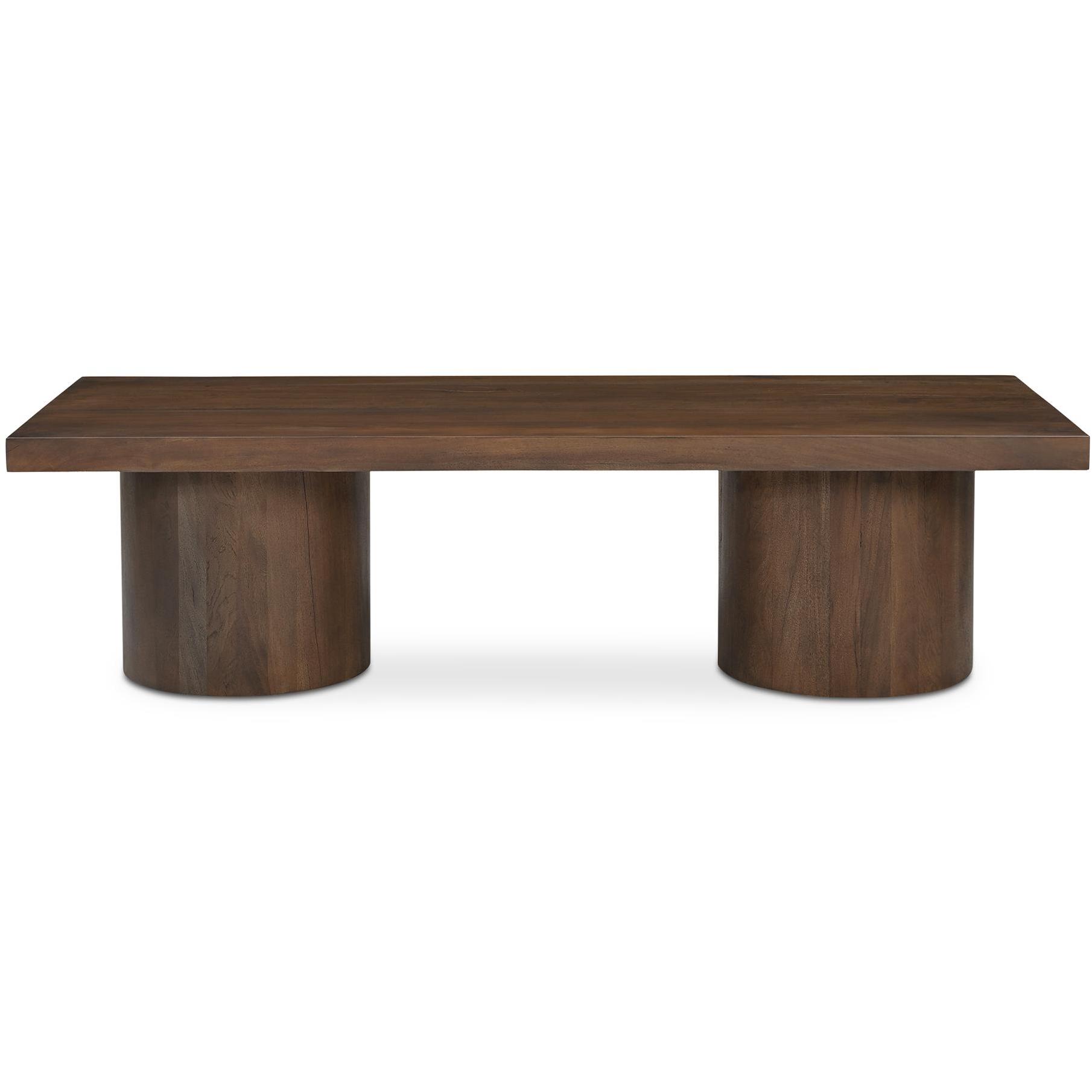 Reclaimed neem wood takes center stage in the Hadley coffee table as each piece tells its own story of thoughtful craftsmanship. The 2-inch thick rectangular top, supported by robust cylindrical bases, creates a grounded yet graceful silhouette.