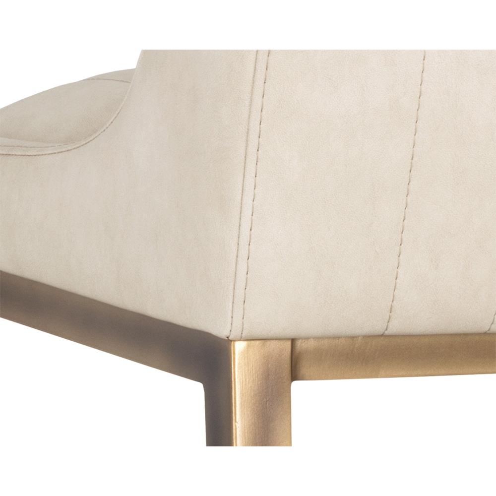 An urban designed stool featuring bold vertical channel tufting on the seat and back in bravo cream faux leather. Finished with a rustic bronze steel frame and stretchers. Great for residential and commercial placements. Suitable for various dining, kitchen and bar spaces of all sizes. Handle With Care: This design has been crafted with faux leather. Faux leather is manufactured to reflect the natural characteristics of leather; as such, colour variations, markings, wrinkles, grooves, and light scratches are appreciated characteristics. No two pieces will be alike.