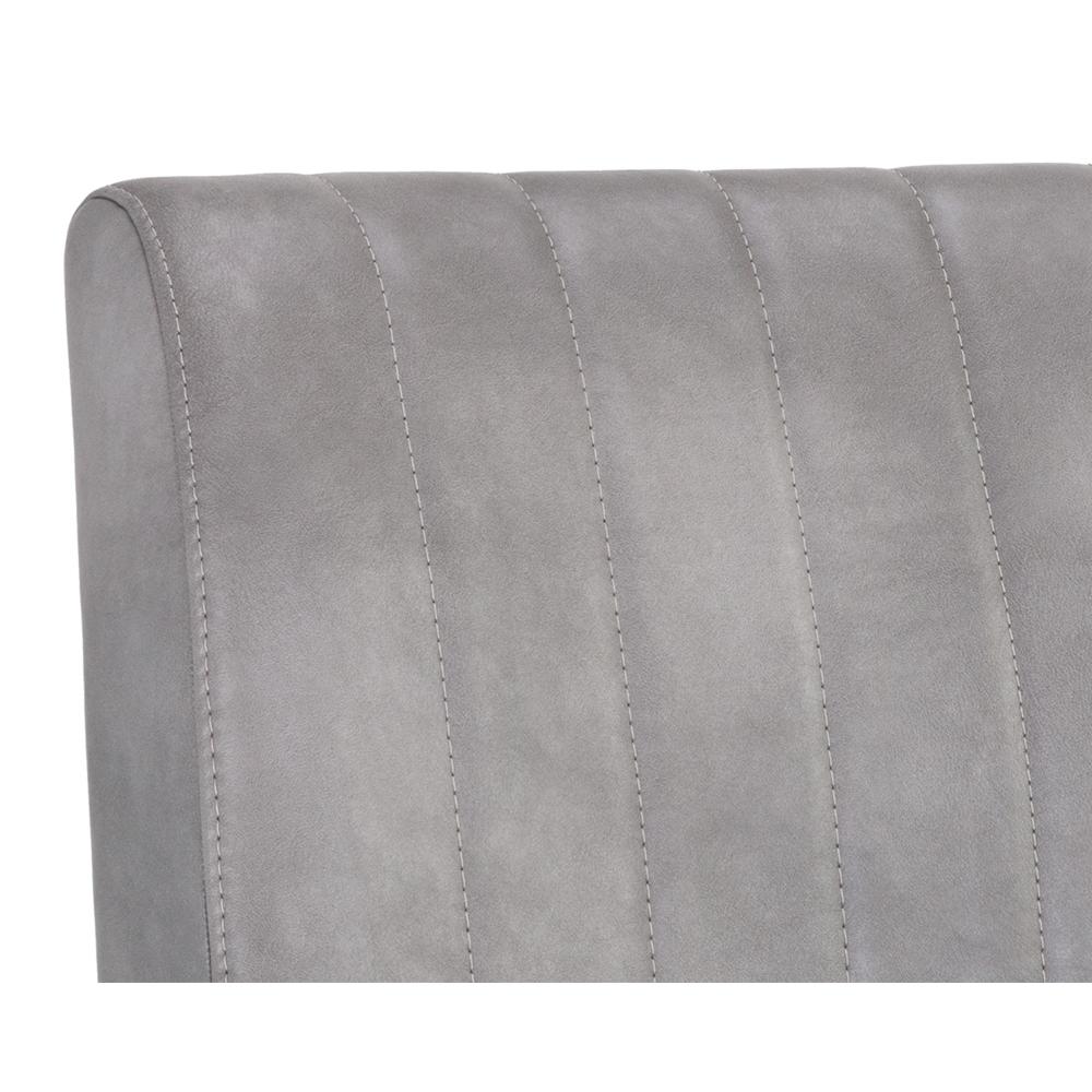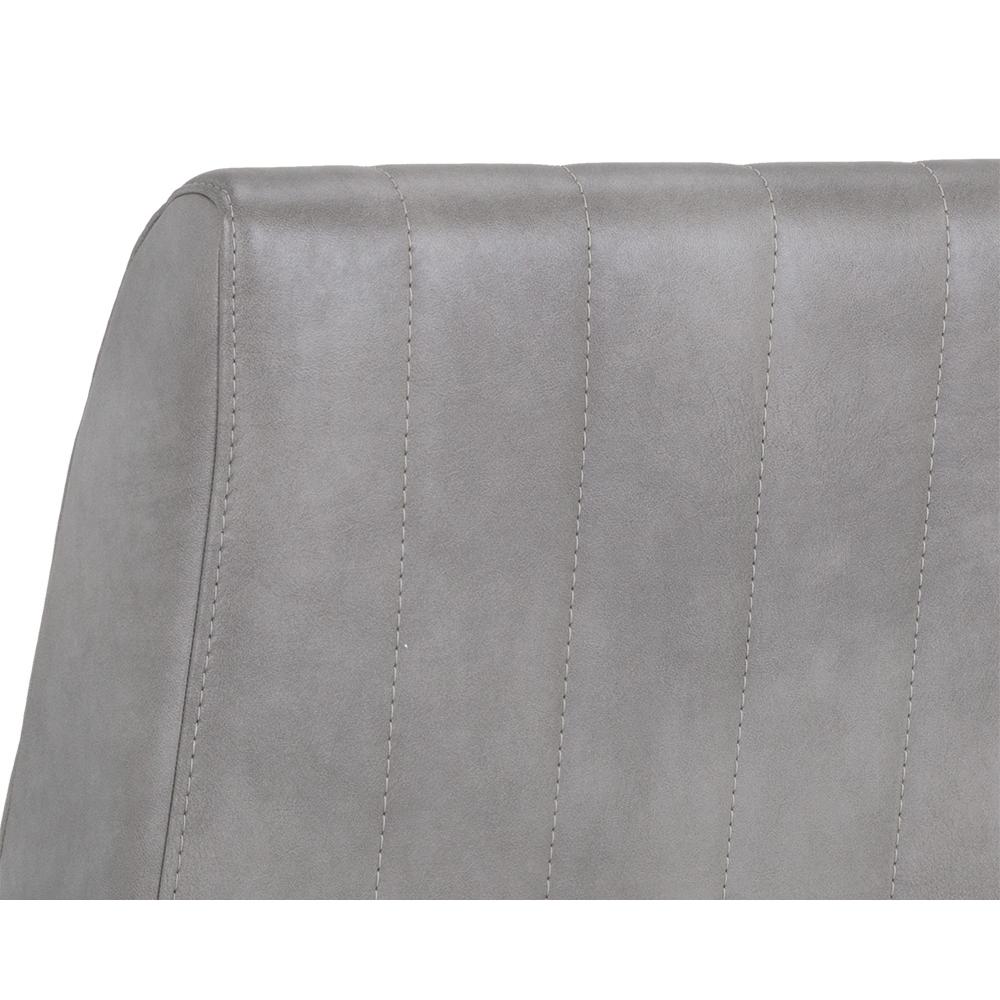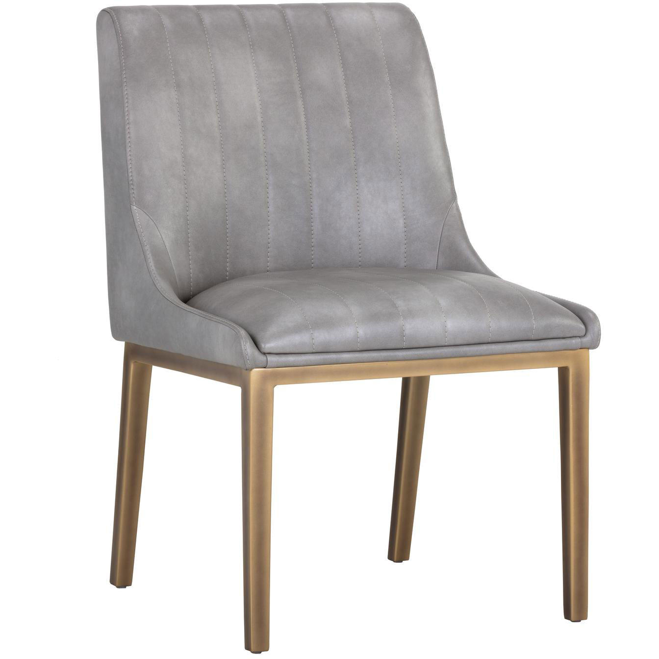 A sleek, urban designed dining chair featuring bold vertical stitching on the seat and back in bravo metal faux leather. Finished with a rustic bronze steel frame. Place in dining and office spaces for a retro look. Handle With Care: This design has been crafted with faux leather. Faux leather is manufactured to reflect the natural characteristics of leather; as such, colour variations, markings, wrinkles, grooves, and light scratches are appreciated characteristics. No two pieces will be alike.