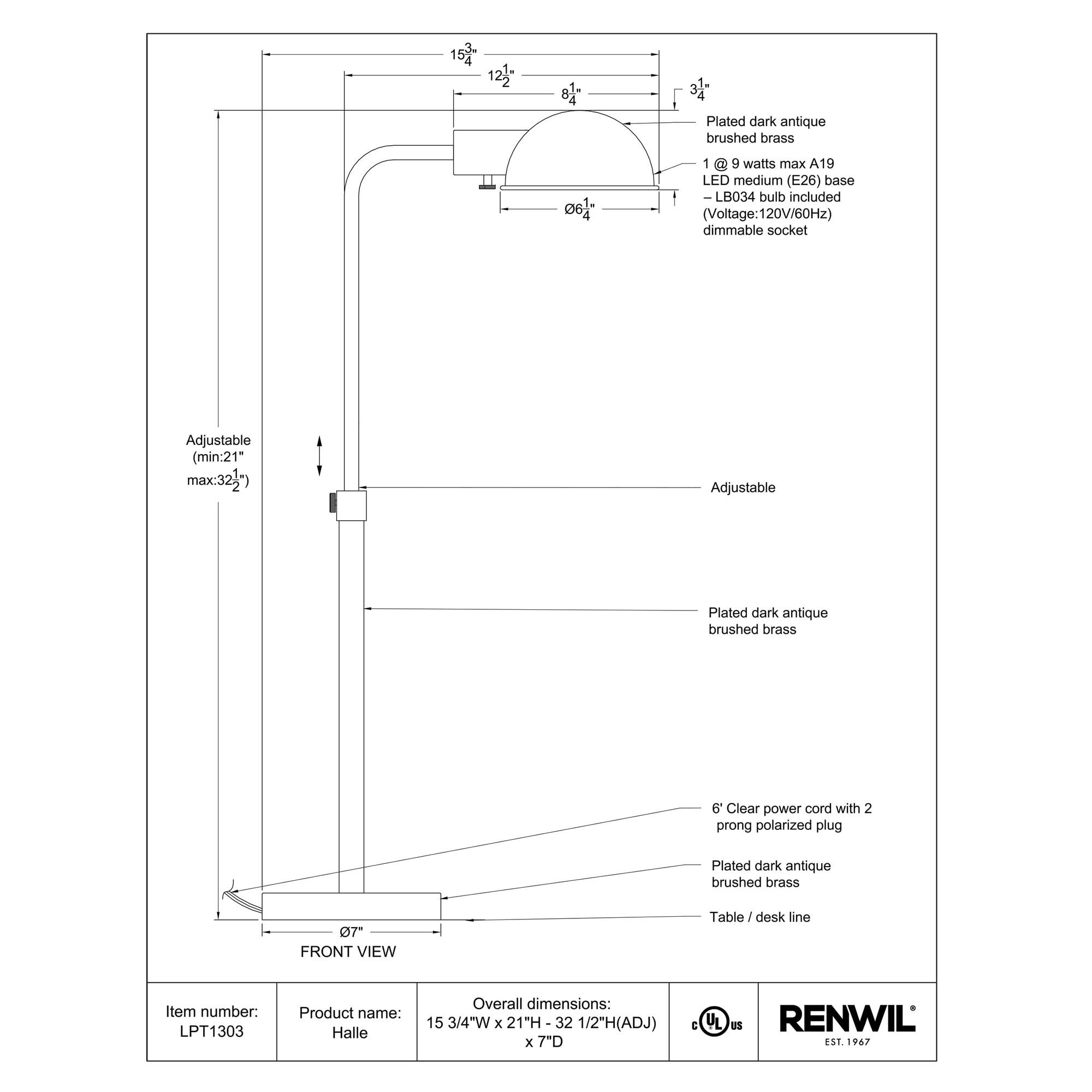 Place this transitional table lamp by the side of a sofa, chair or bed if timeless appeal is the effect you’re after. Its dark antique brushed brass-plated finish delivers an old-world patina that brings warmth and charm to any space, while height-adjustability and dimmability allow for customizable lighting at the flick of a switch.